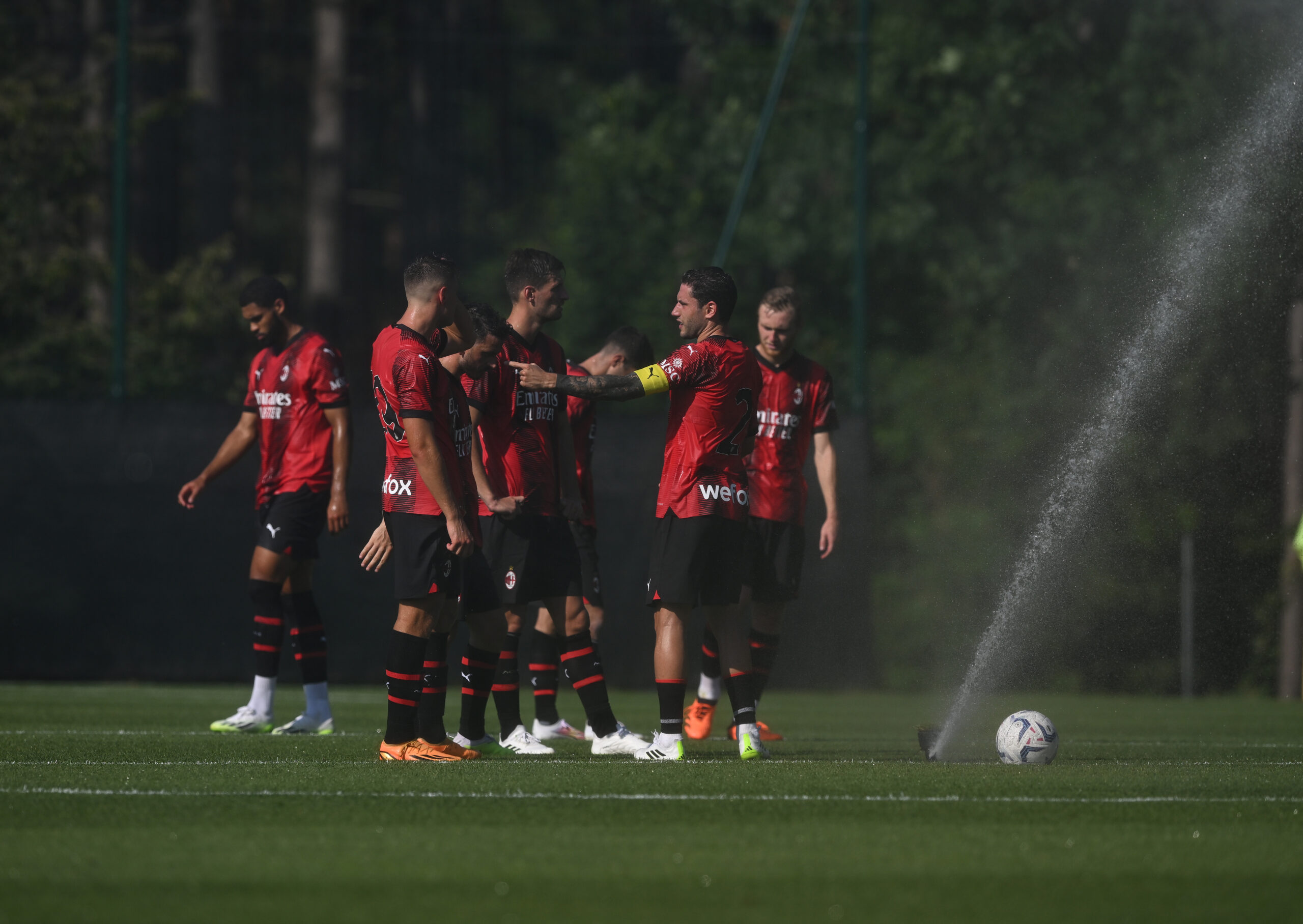 CAIRATE, ITALY - JULY 20: Players of AC Milan reacts during the Pre Season Friendly match between AC Milan and Lumezzane at Milanello on July 20, 2023 in Cairate, Italy. (Photo by Claudio Villa/AC Milan via Getty Images)