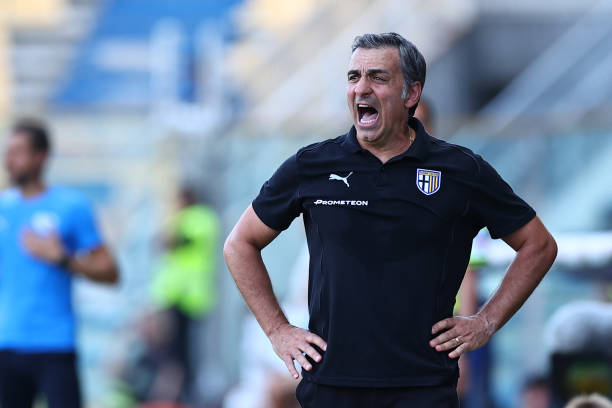 PARMA, ITALY - AUGUST 11: Fabio Pecchia head coach of Parma Calcio 1913 gives instructions to his players during the Coppa Italia match between Parma Calcio 1913 and Palermo at Stadio Ennio Tardini on August 11, 2024 in Parma, Italy. (Photo by Parma Calcio 1913/Parma Calcio 1913 via Getty Images)