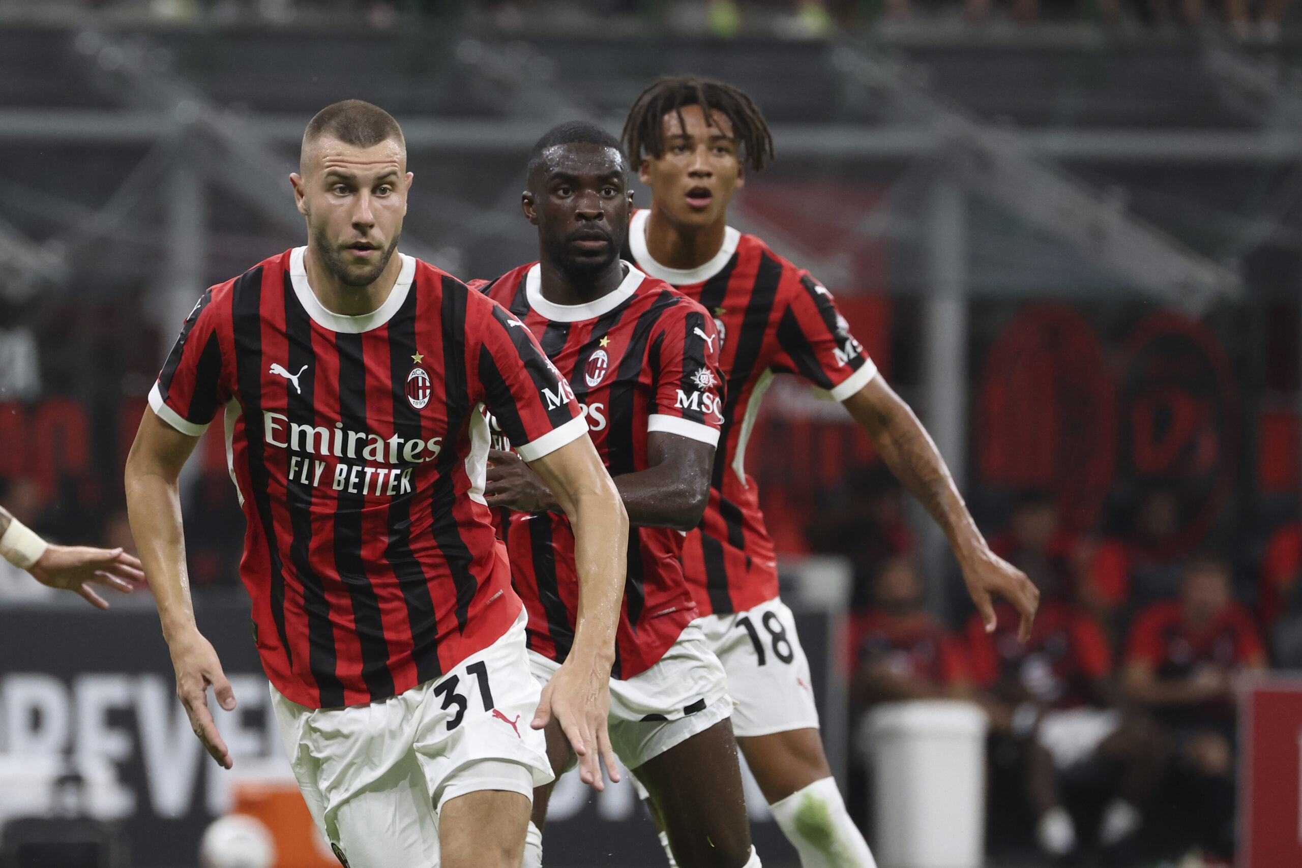MILAN, ITALY - AUGUST 13: Strahinja Pavlovic of AC Milan in action during the Trofeo Berlusconi match between AC Milan and Monza at Stadio Giuseppe Meazza on August 13, 2024 in Milan, Italy. (Photo by Giuseppe Cottini/AC Milan via Getty Images)
