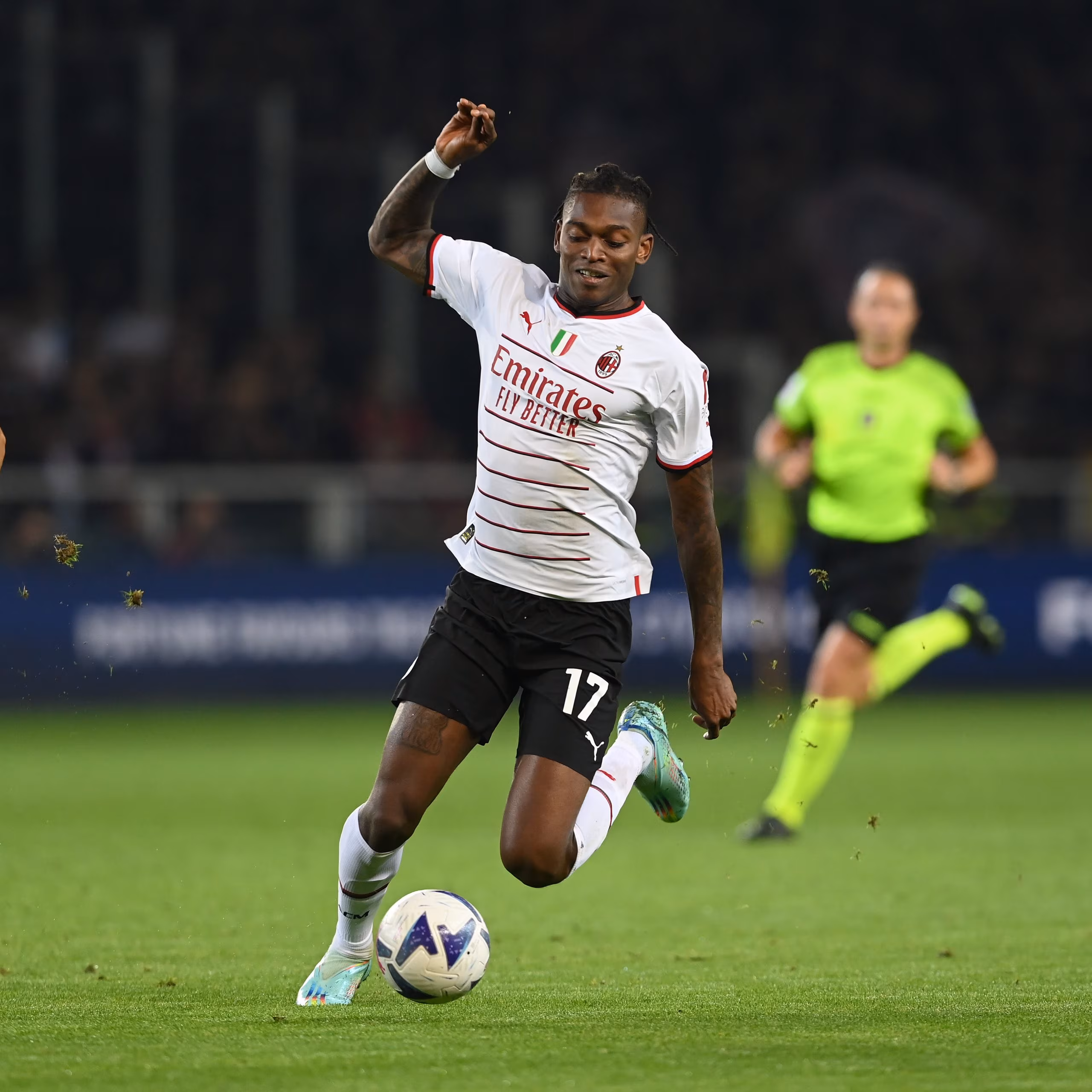 TURIN, ITALY - OCTOBER 30: Rafael Leao of AC Milan in action during the Serie A match between Torino FC and AC Milan at Stadio Olimpico di Torino on October 30, 2022 in Turin, Italy. (Photo by Claudio Villa/AC Milan via Getty Images)