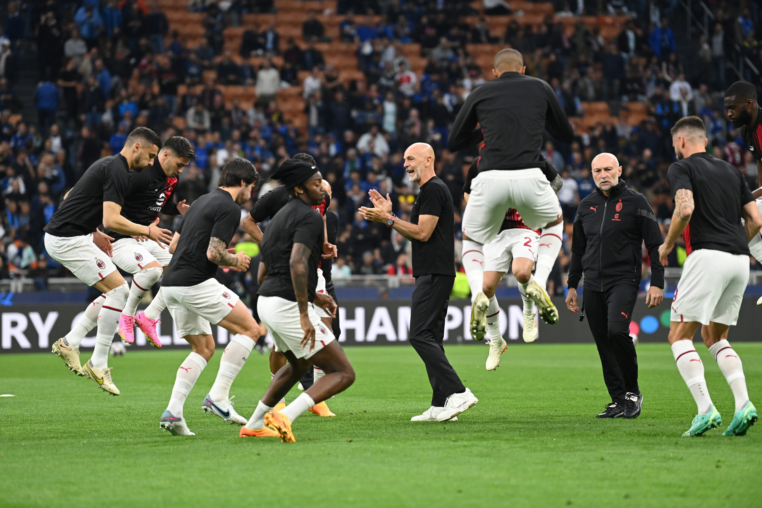 MILAN, ITALY - MAY 16: Head coach of AC Milan Stefano Pioli reacts with players before the UEFA Champions League semi-final second leg match between FC Internazionale and AC Milan at Stadio Giuseppe Meazza on May 16, 2023 in Milan, Italy. (Photo by Claudio Villa/AC Milan via Getty Images)