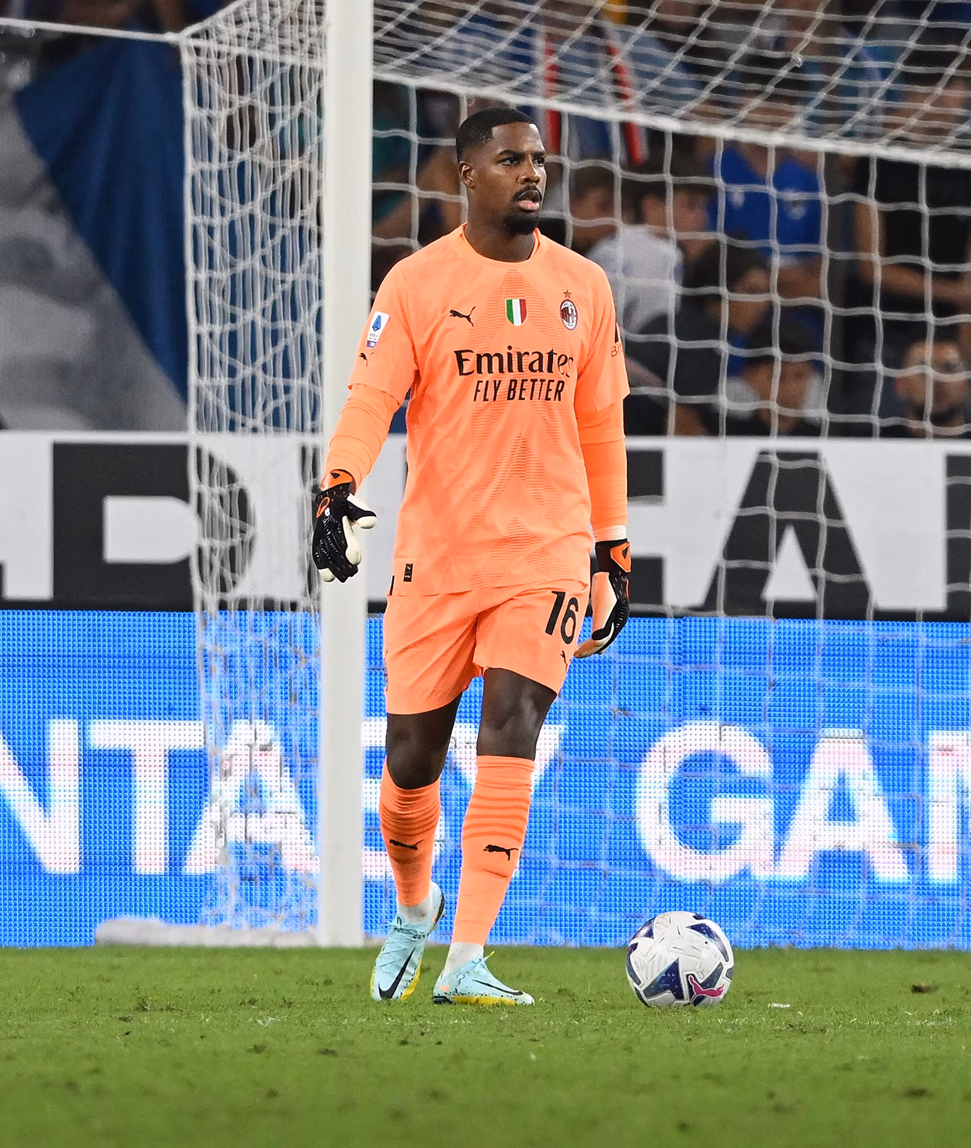 GENOA, ITALY - SEPTEMBER 10: Mike Maignan of AC Milan in action during the Serie A match between UC Sampdoria and AC MIlan at Stadio Luigi Ferraris on September 10, 2022 in Genoa, Italy. (Photo by Claudio Villa/AC Milan via Getty Images)