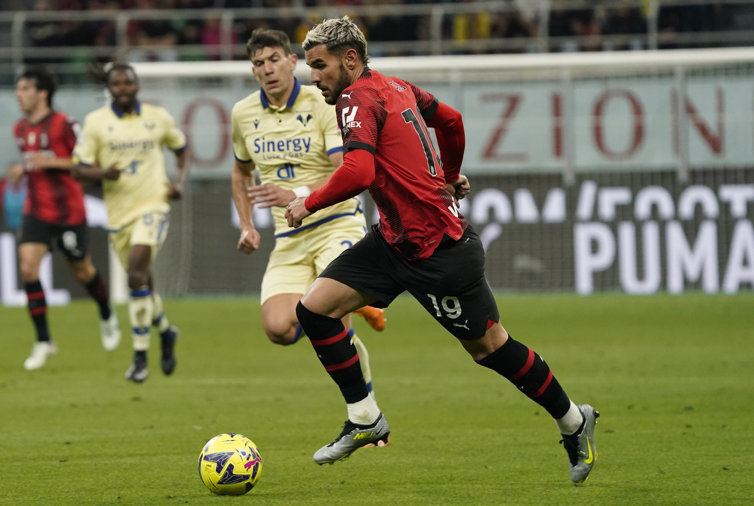 MILAN, ITALY - JUNE 04: Théo Hernández of AC Milan runs for the ball during the Serie A match between AC MIlan and Hellas Verona at Stadio Giuseppe Meazza on June 04, 2023 in Milan, Italy. (Photo by Pier Marco Tacca/AC Milan via Getty Images)