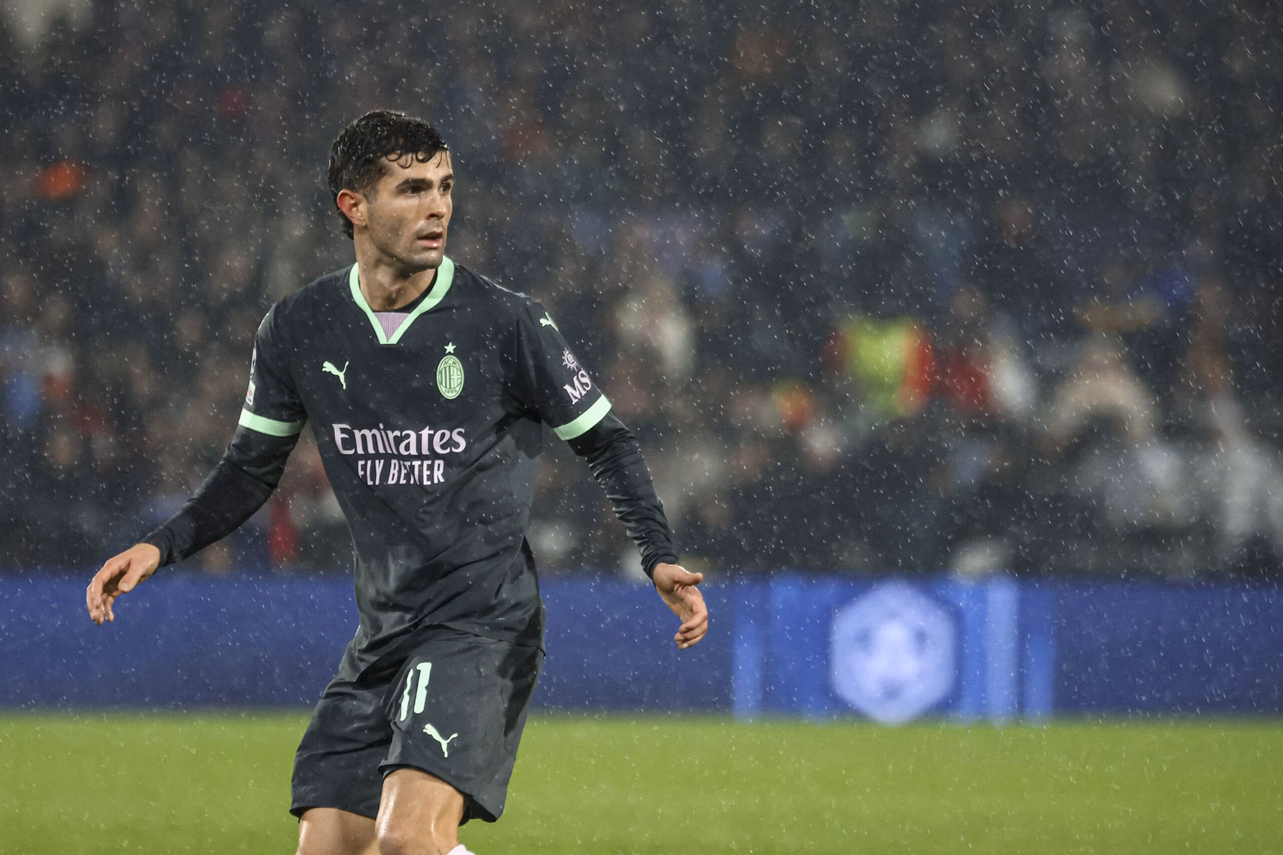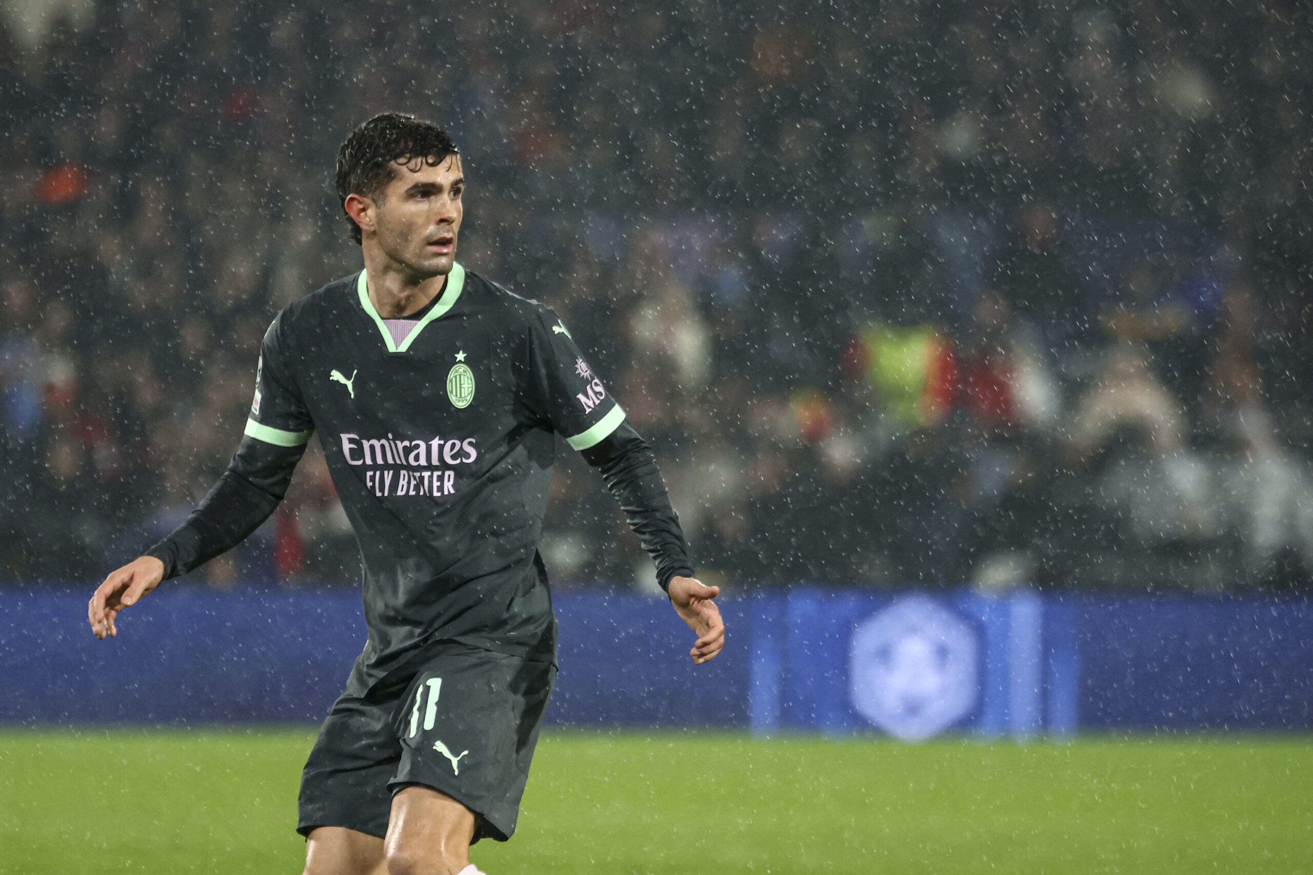 ROTTERDAM, NETHERLANDS - FEBRUARY 12: Christian Pulisic of AC Milan looks on during the UEFA Champions League 2024/25 League Knockout Play-off first leg match between Feyenoord and AC Milan at Stadion Feijenoord (De Kuip) on February 12, 2025 in Rotterdam, Netherlands. (Photo by Giuseppe Cottini/AC Milan via Getty Images)