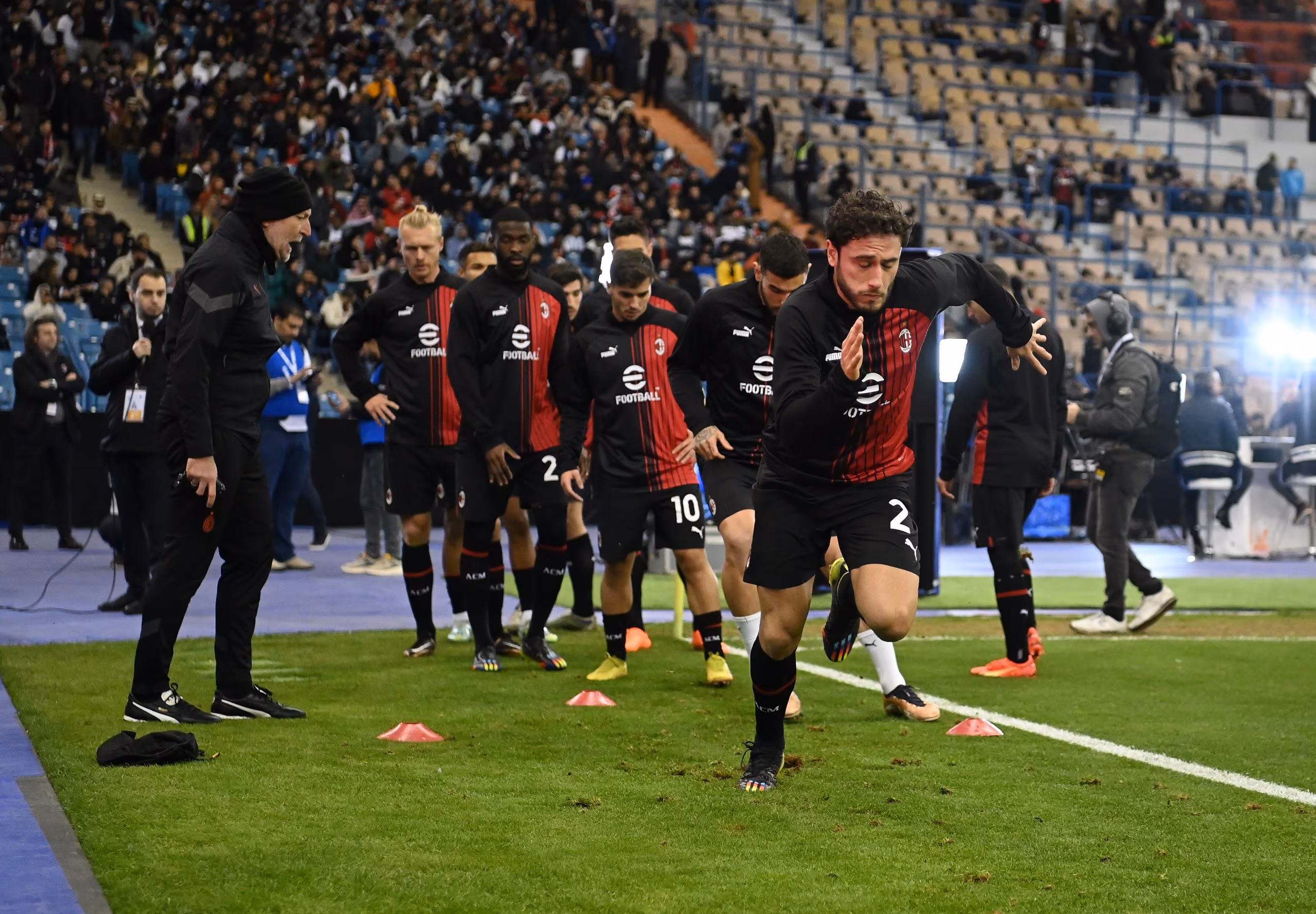 RIYADH, SAUDI ARABIA - JANUARY 18: Players of AC Milan warms up ahead before the EA Sports Supercup match between AC Milan and FC Internazionale at King Fahd International Stadium on January 18, 2023 in Riyadh, Saudi Arabia. (Photo by Claudio Villa/AC Milan via Getty Images)