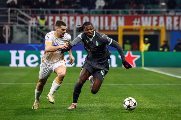 MILAN, ITALY - DECEMBER 11: Rafael Leao of AC Milan in action during the UEFA Champions League 2024/25 League Phase MD6 match between AC Milan and FK Crvena Zvezda at Stadio San Siro on December 11, 2024 in Milan, Italy. (Photo by Giuseppe Cottini/AC Milan via Getty Images)