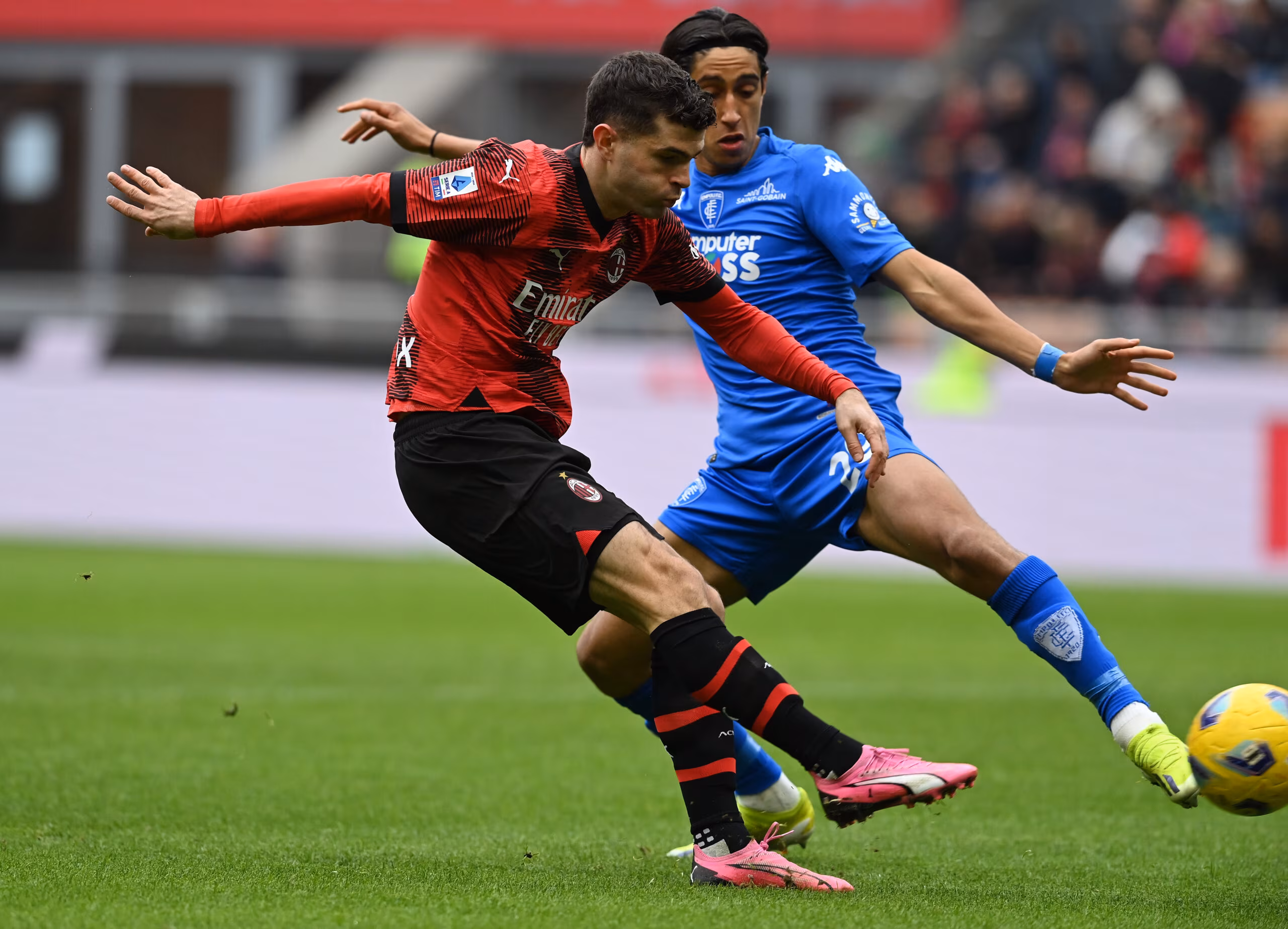 Parte subito con il piede sull’acceleratore il Milan che nei primi minuti di gioco impensierisce a più riprese Caprile che tiene bene le avanzate rossonere. Occasione clamorosa al 18′ per i meneghini: Loftus Cheek si inserisce in area dalla corsia di destra e mette in mezzo per Okafor, l’esterno svizzero però si fa soffiare il pallone dalla retroguardia difensiva toscana. Al 41′ arriva il gol del vantaggio dei padroni di casa. Noah Okafor scatta sulla fascia e serve in mezzo Christian Pulisic. L’americano calcia in porta e trova la deviazione di Luperto che inganna Caprile. Al 48′ Sacchi fischia la fine della prima frazione di gioco.