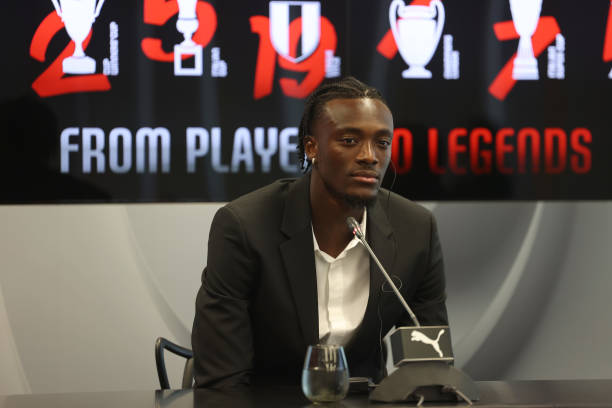 MILAN, ITALY - SEPTEMBER 03: AC Milan New Signing Tammy Abraham attends his press conference at Casa Milan on September 03, 2024 in Milan, Italy. (Photo by Sara Cavallini/AC Milan via Getty Images)
