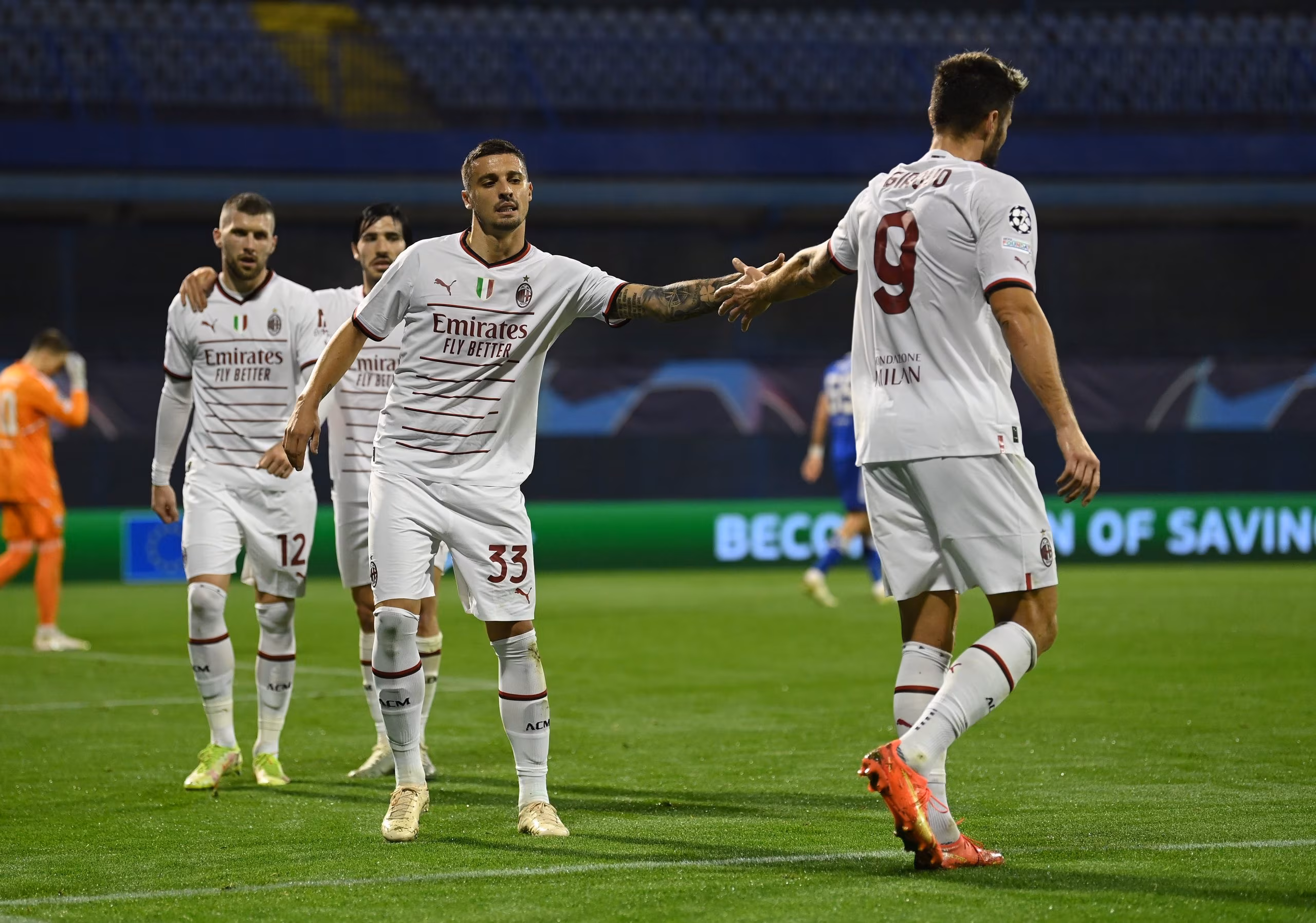 ZAGREB, CROATIA - OCTOBER 25: Olivier Giroud of AC Milan celebrates after scoring the goal during the UEFA Champions League group E match between Dinamo Zagreb and AC Milan at Stadion Maksimir on October 25, 2022 in Zagreb, Croatia. (Photo by Claudio Villa/AC Milan via Getty Images)