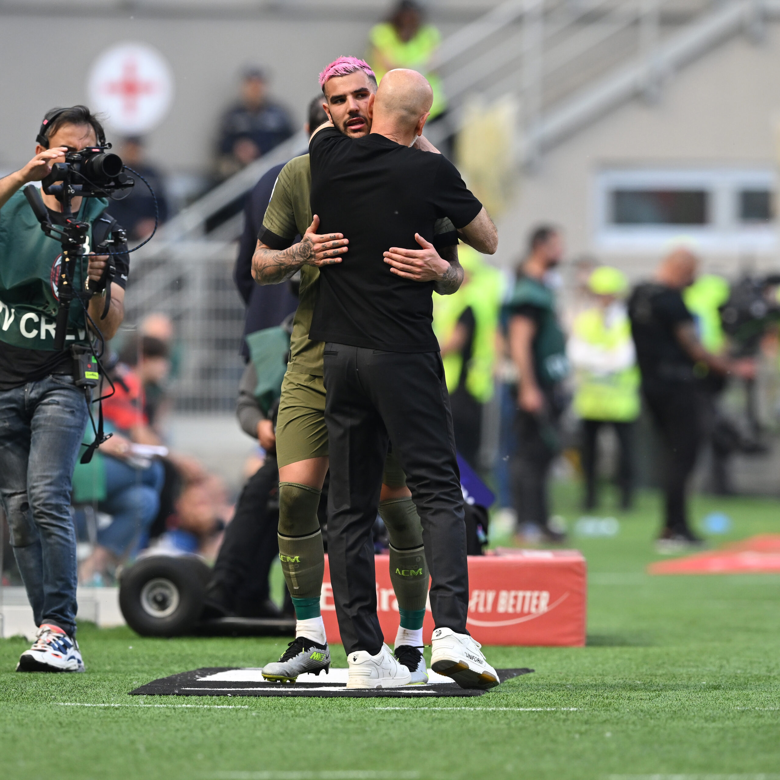 MILAN, ITALY - MAY 06: Head coach of AC Milan Stefano Pioli reacts during the Serie A match between AC Milan and SS Lazio at Stadio Giuseppe Meazza on May 06, 2023 in Milan, Italy. (Photo by Claudio Villa/AC Milan via Getty Images)