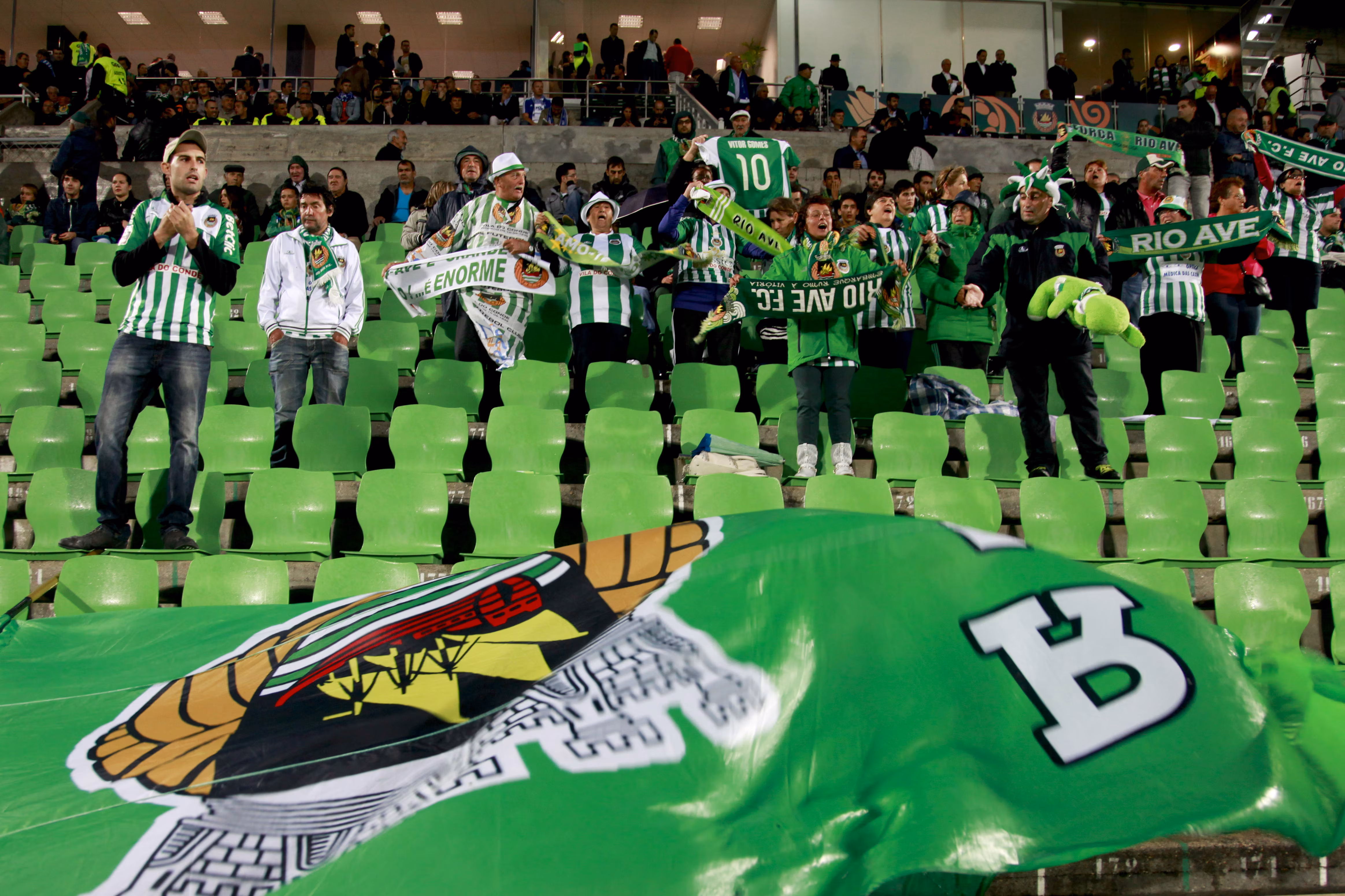 VILA DO CONDO,PORTUGAL - SEPTEMBER 18: Rio Ave fans during the UEFA Europa League Group J match between Rio Ave FC and FC Dynamo Kyiv at the Dos Arcos Stadium on September 18, 2014 in Vila do Conde,Portugal. (Photo by Henriques Da Cunha/EuroFootball/Getty Images)