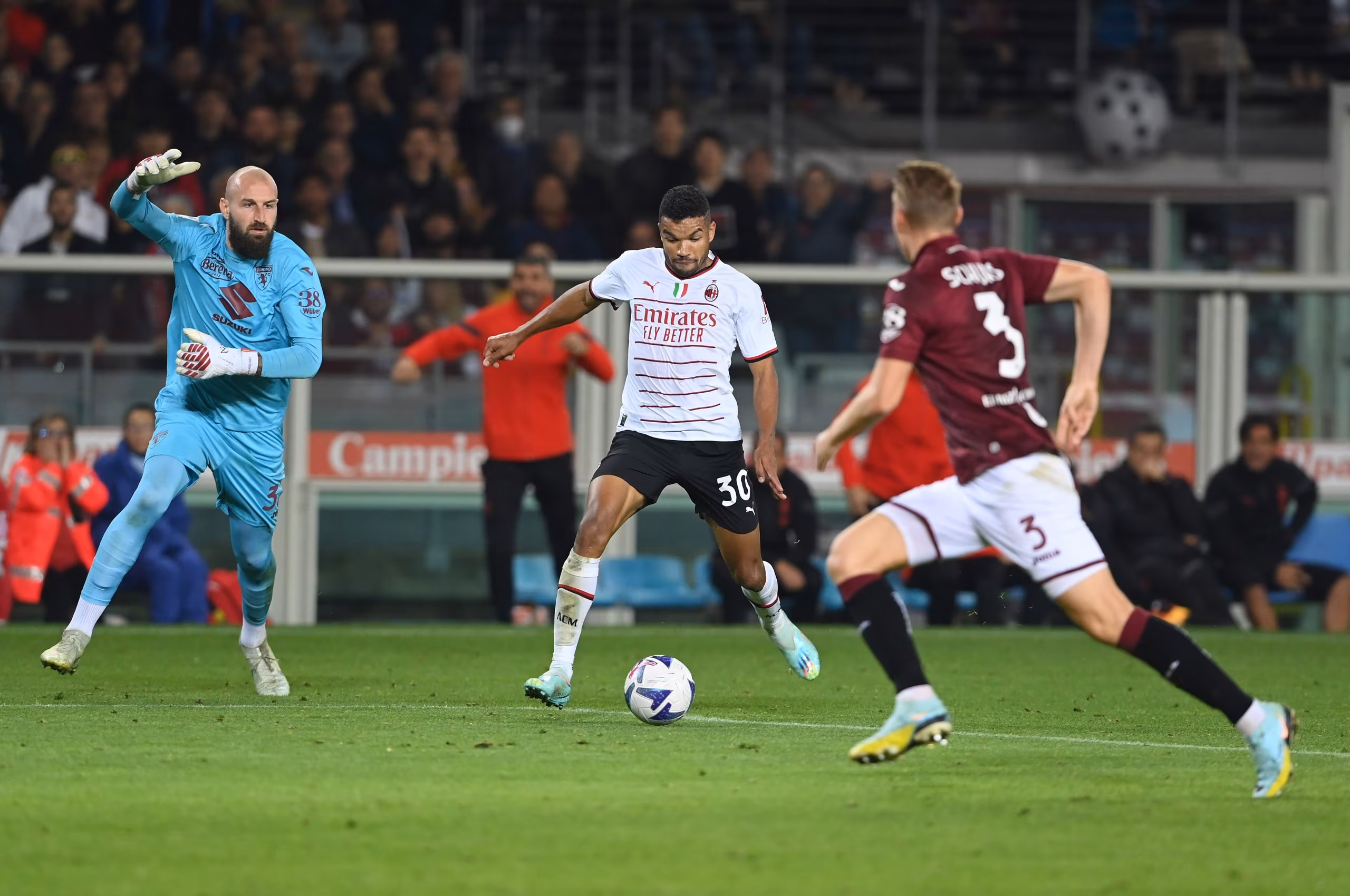 39’- Ammonito anche Kalulu, con il terzino rossonero che interviene in ritardo sull’avversario.