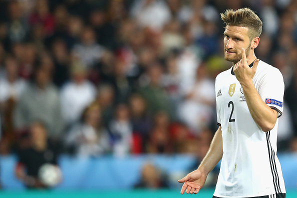 LILLE, FRANCE - JUNE 12: Shkodran Mustafi of Germany gives instructions to his team mates during the UEFA EURO 2016 Group C match between Germany and Ukraine at Stade Pierre-Mauroy on June 12, 2016 in Lille, France. (Photo by Alexander Hassenstein/Getty Images)