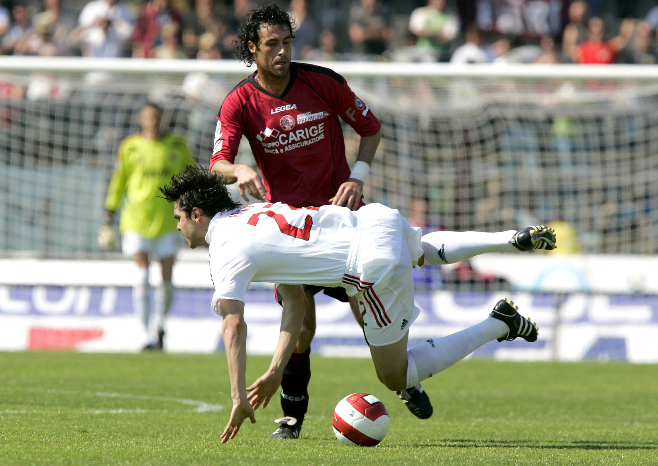 LIVORNO, ITALY - APRIL 27: Fabio Galante of Livorno and Kaka of Milan in action during the Serie A match between Livorno and Milan at the Stadio Armando Picchi on April 27, 2008 in Livorno, Italy. (Photo by New Press/Getty Images)