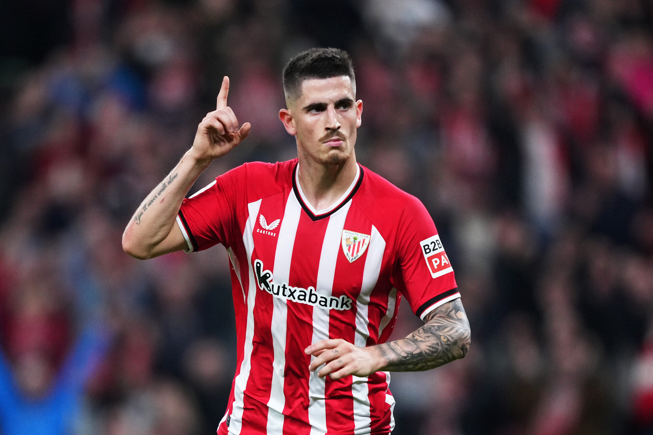 BILBAO, SPAIN - NOVEMBER 10: Oihan Sancet of Athletic Club celebrates after scoring the team's first goal during the LaLiga EA Sports match between Athletic Bilbao and Celta Vigo at Estadio de San Mames on November 10, 2023 in Bilbao, Spain. (Photo by Juan Manuel Serrano Arce/Getty Images)