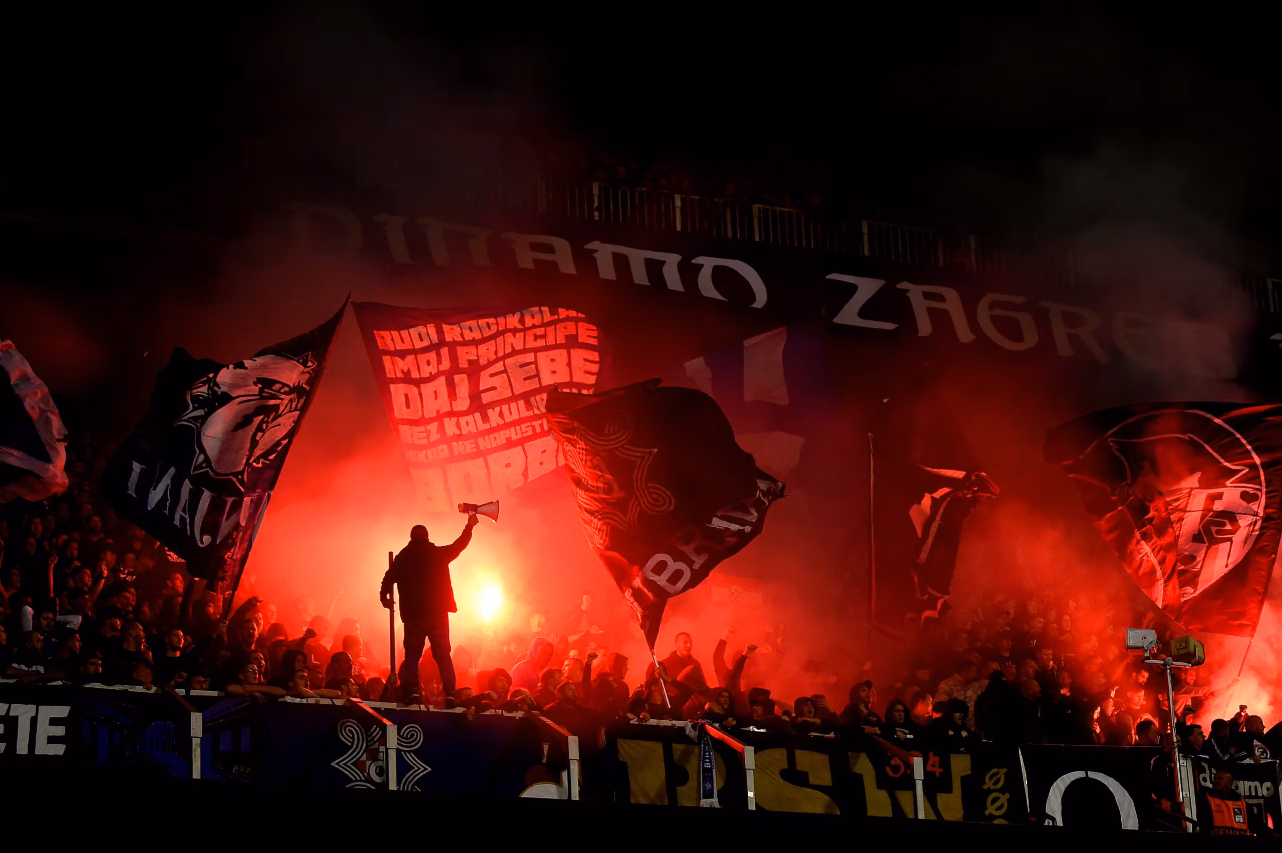 ZAGREB, CROATIA - OCTOBER 25: A general view as fans of Dinamo Zagreb use smoke flares during the UEFA Champions League group E match between Dinamo Zagreb and AC Milan at Stadion Maksimir on October 25, 2022 in Zagreb, Croatia. (Photo by Jurij Kodrun/Getty Images)