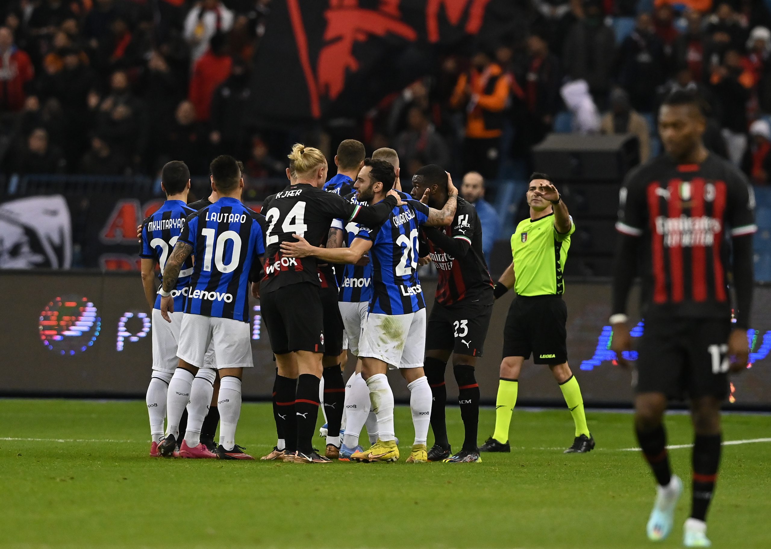 RIYADH, SAUDI ARABIA - JANUARY 18: Simon Kjaer of AC Milan reacts during the EA Sports Supercup match between AC Milan and FC Internazionale at King Fahd International Stadium on January 18, 2023 in Riyadh, Saudi Arabia. (Photo by Claudio Villa/AC Milan via Getty Images)