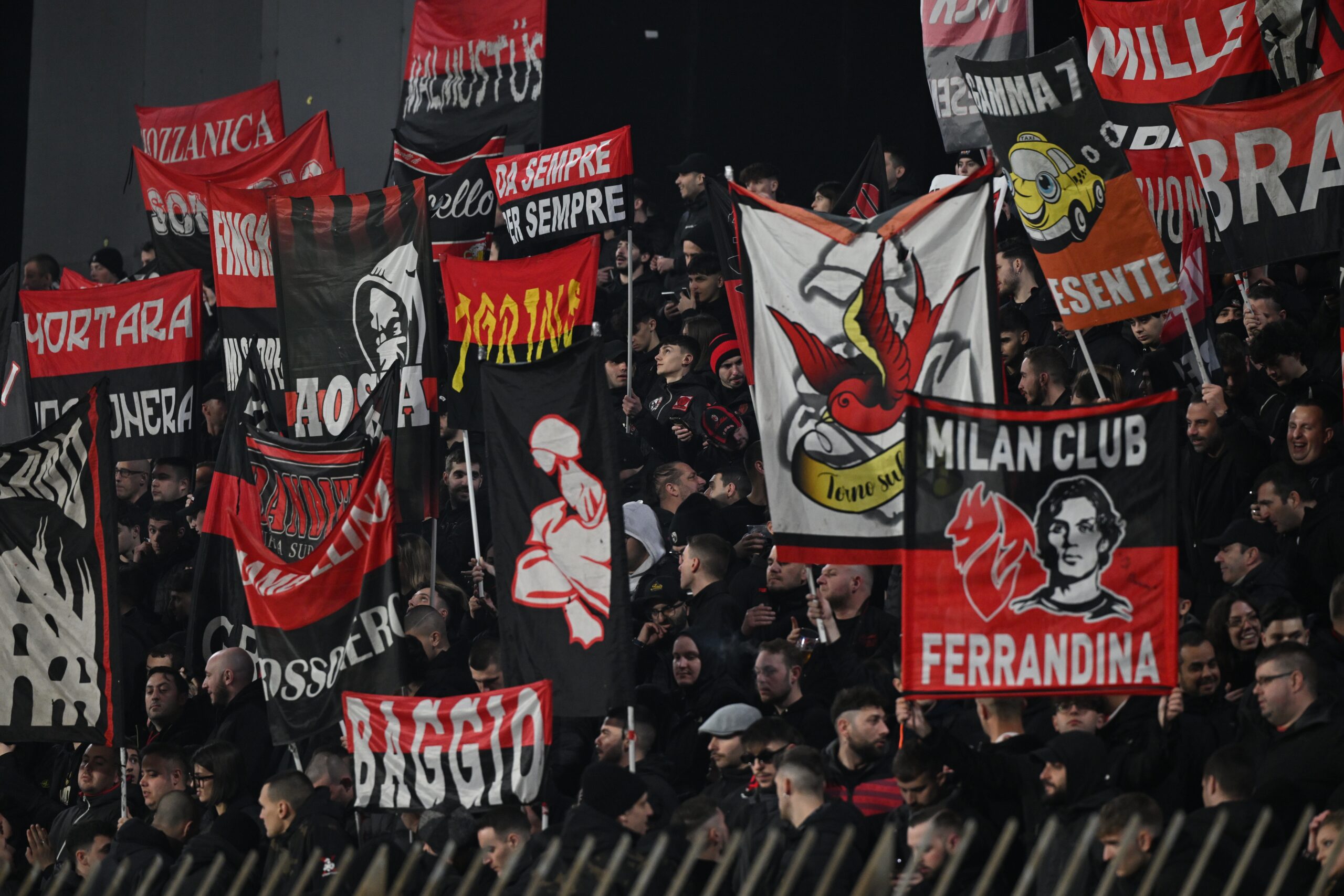 MONZA, ITALY - FEBRUARY 18: Fans of AC Milan during the Serie A TIM match between AC Monza and AC Milan - Serie A TIM at U-Power Stadium on February 18, 2024 in Monza, Italy. (Photo by Claudio Villa/AC Milan via Getty Images)