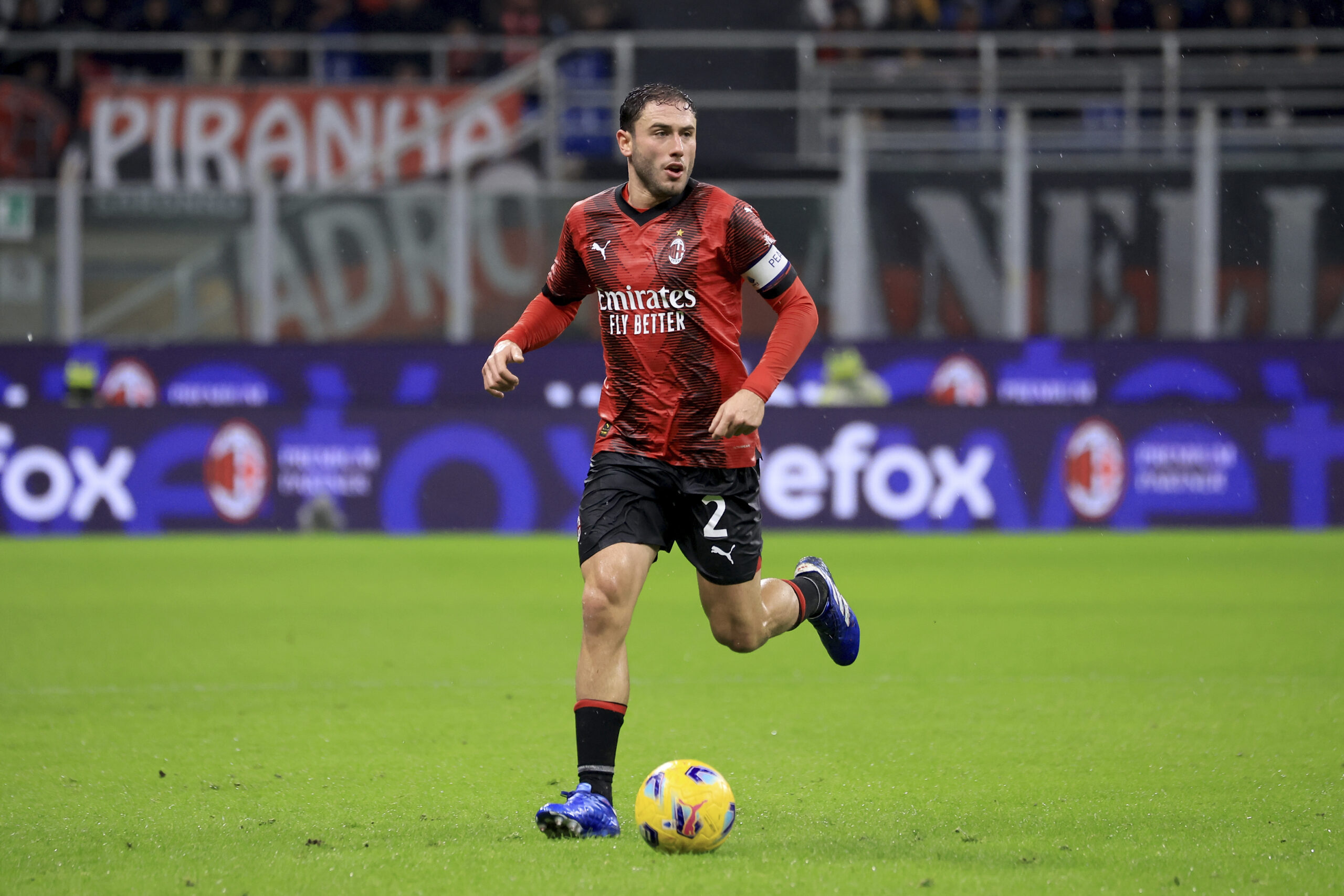 MILAN, ITALY - NOVEMBER 04: Davide Calabria of AC Milan in action during the Serie A TIM match between AC Milan and Udinese Calcio at Stadio Giuseppe Meazza on November 04, 2023 in Milan, Italy. (Photo by Giuseppe Cottini/AC Milan via Getty Images)