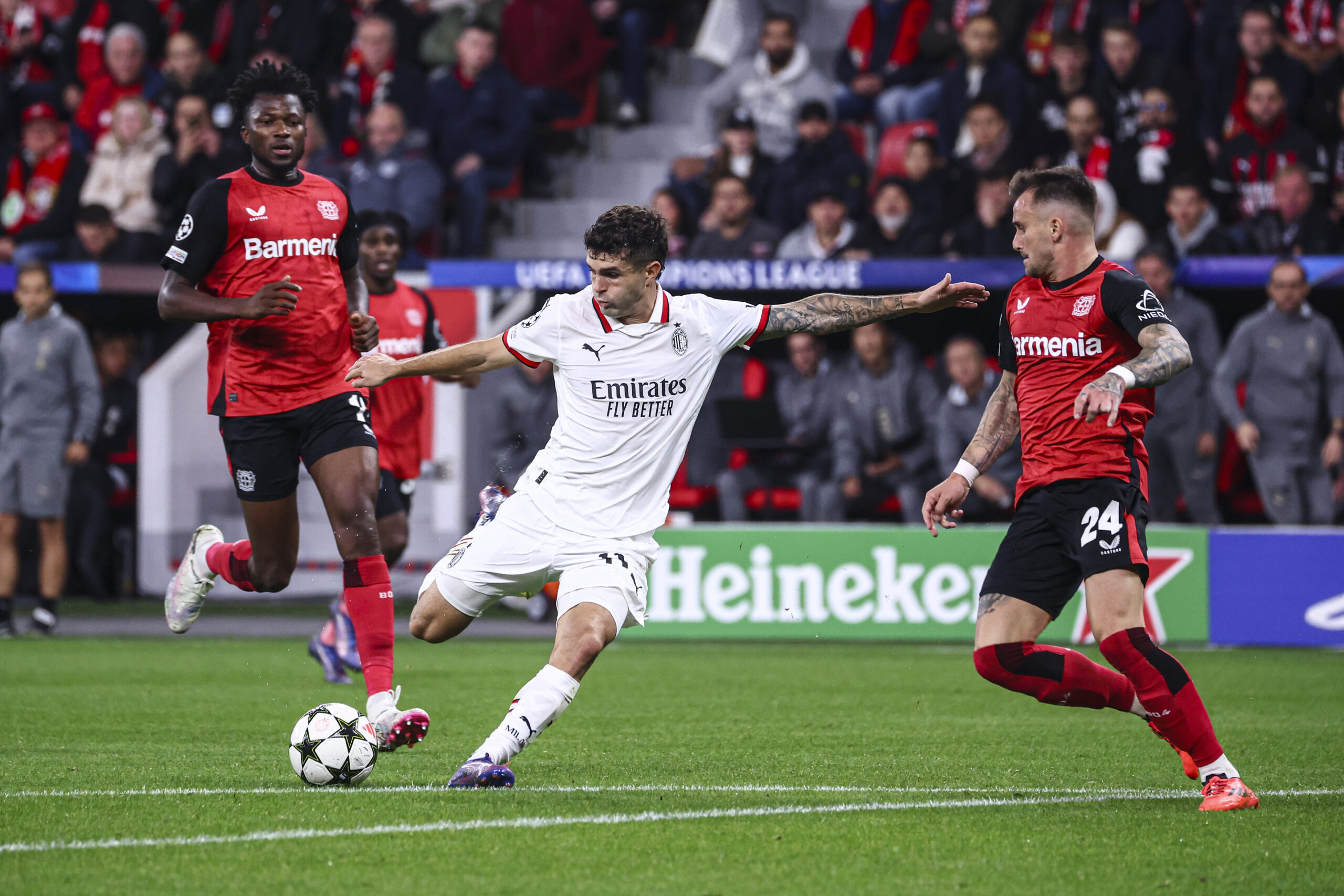 LEVERKUSEN, GERMANY - OCTOBER 01: Christian Pulisic of AC Milan in action during the UEFA Champions League 2024/25 League Phase MD2 match between Bayer 04 Leverkusen and AC Milan at BayArena on October 01, 2024 in Leverkusen, Germany. (Photo by Giuseppe Cottini/AC Milan via Getty Images)