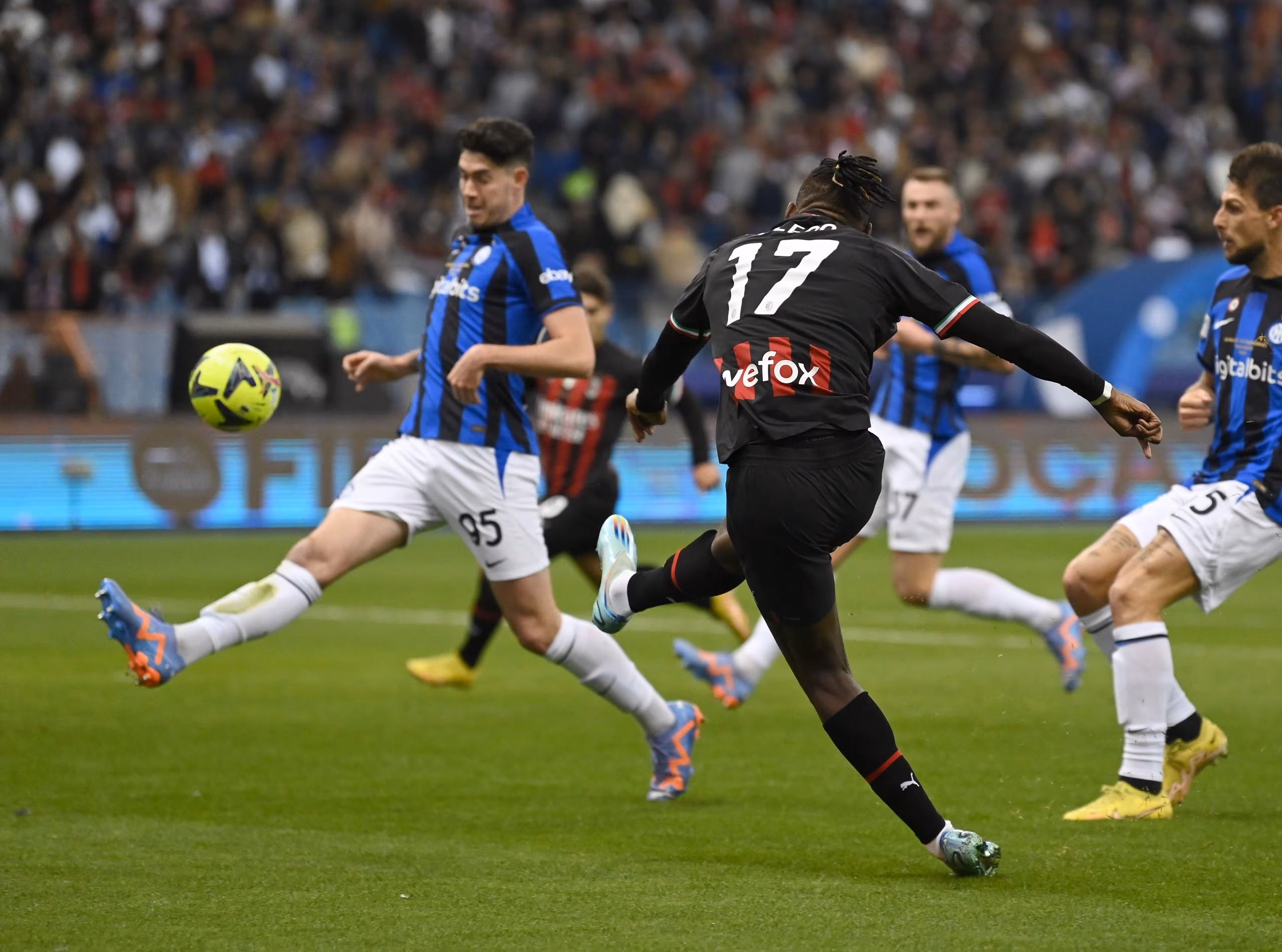 RIYADH, SAUDI ARABIA - JANUARY 18: Rafael Leao of AC Milan in action during the EA Sports Supercup match between AC Milan and FC Internazionale at King Fahd International Stadium on January 18, 2023 in Riyadh, Saudi Arabia. (Photo by Claudio Villa/AC Milan via Getty Images)