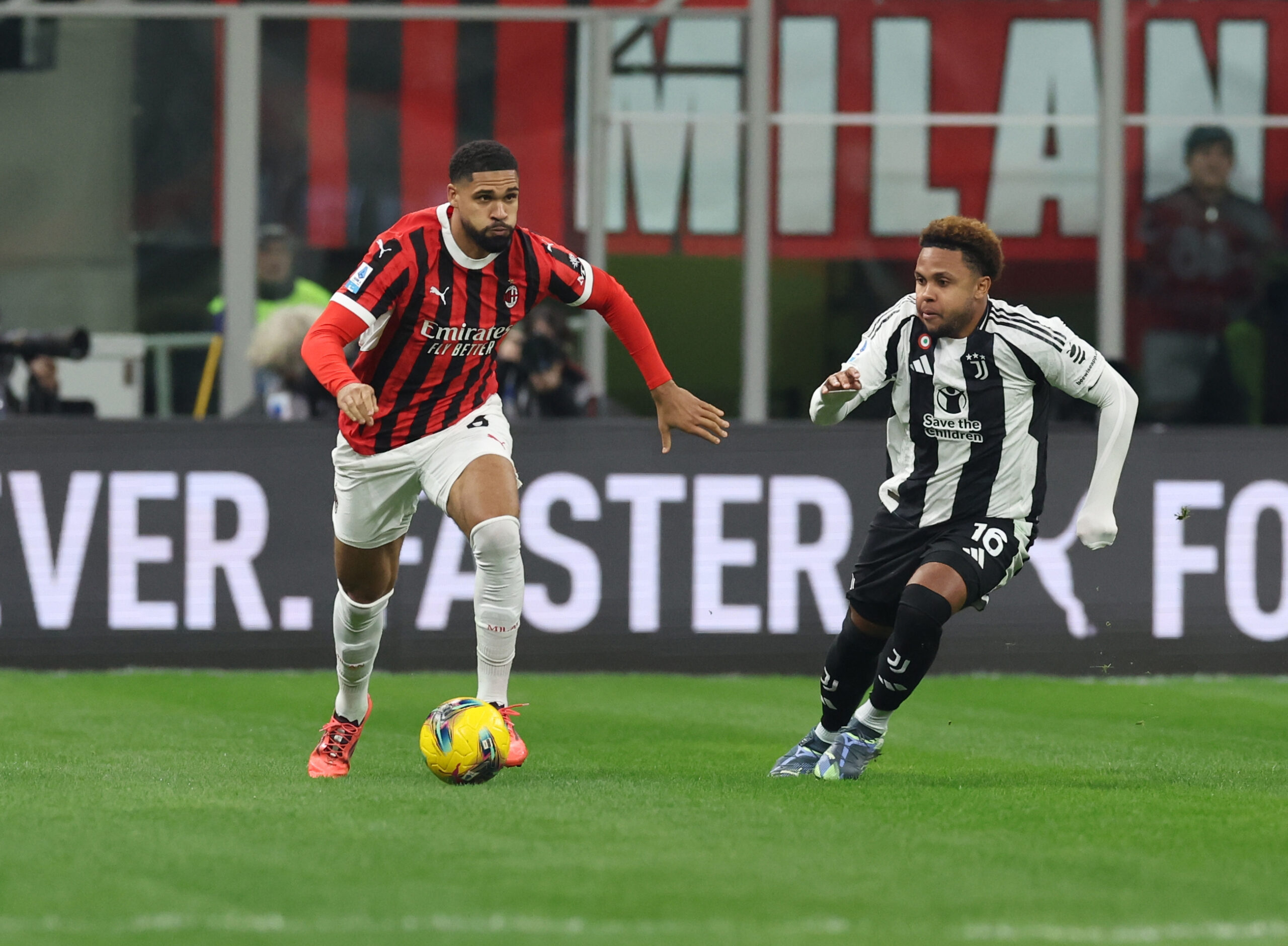 MILAN, ITALY - NOVEMBER 23: Ruben Loftus Cheek of AC Milan competes for the ball with James Ea Weston Mc Kennie of Juventus during the Serie A match between Milan and Juventus at Stadio Giuseppe Meazza on November 23, 2024 in Milan, Italy. (Photo by Claudio Villa/AC Milan via Getty Images)