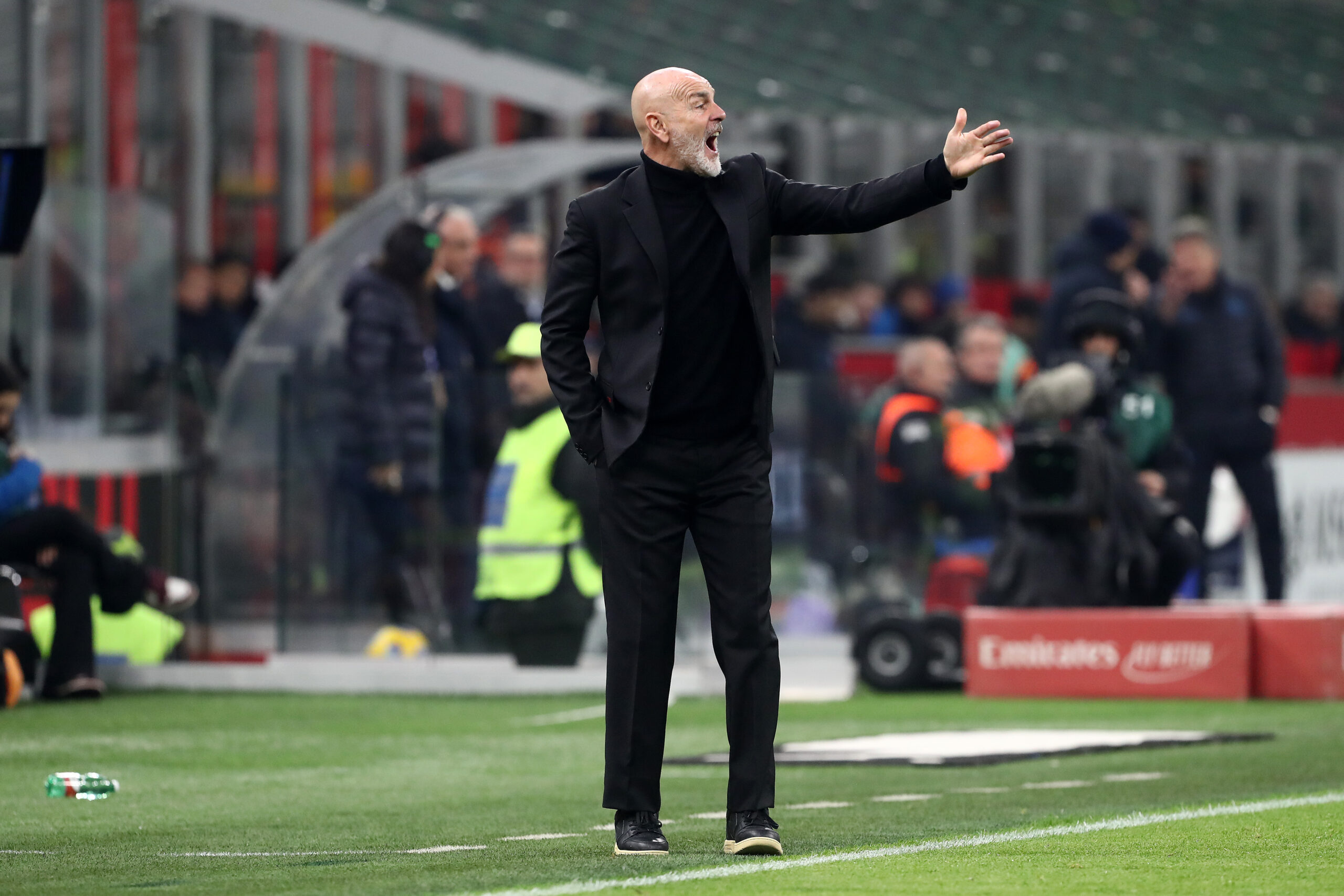 MILAN, ITALY - FEBRUARY 11: Stefano Pioli, Head Coach of AC Milan, gives instructions during the Serie A TIM match between AC Milan and SSC Napoli at Stadio Giuseppe Meazza on February 11, 2024 in Milan, Italy. (Photo by Marco Luzzani/Getty Images)