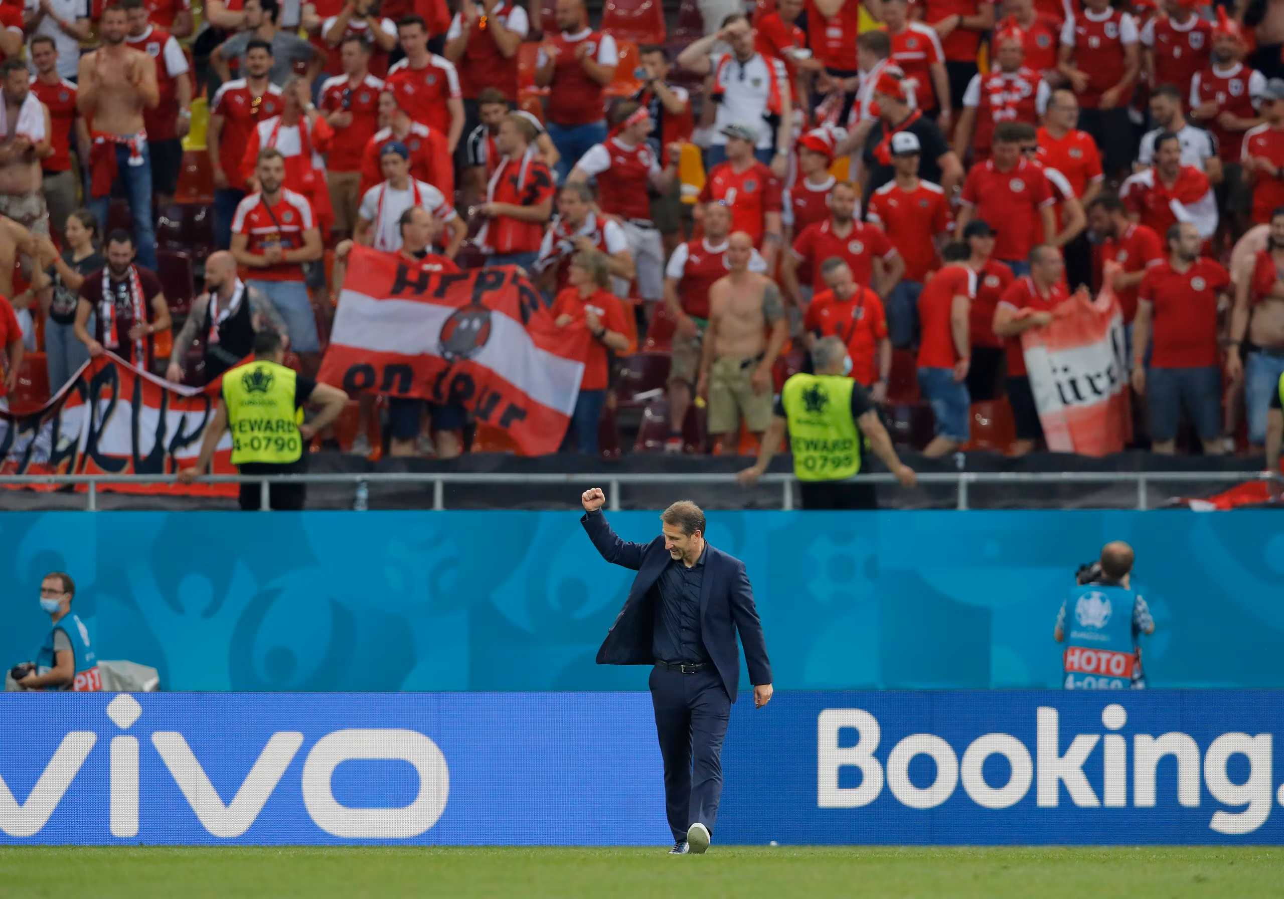 Franco Foda, allenatore, con i supporters della sua Austria.