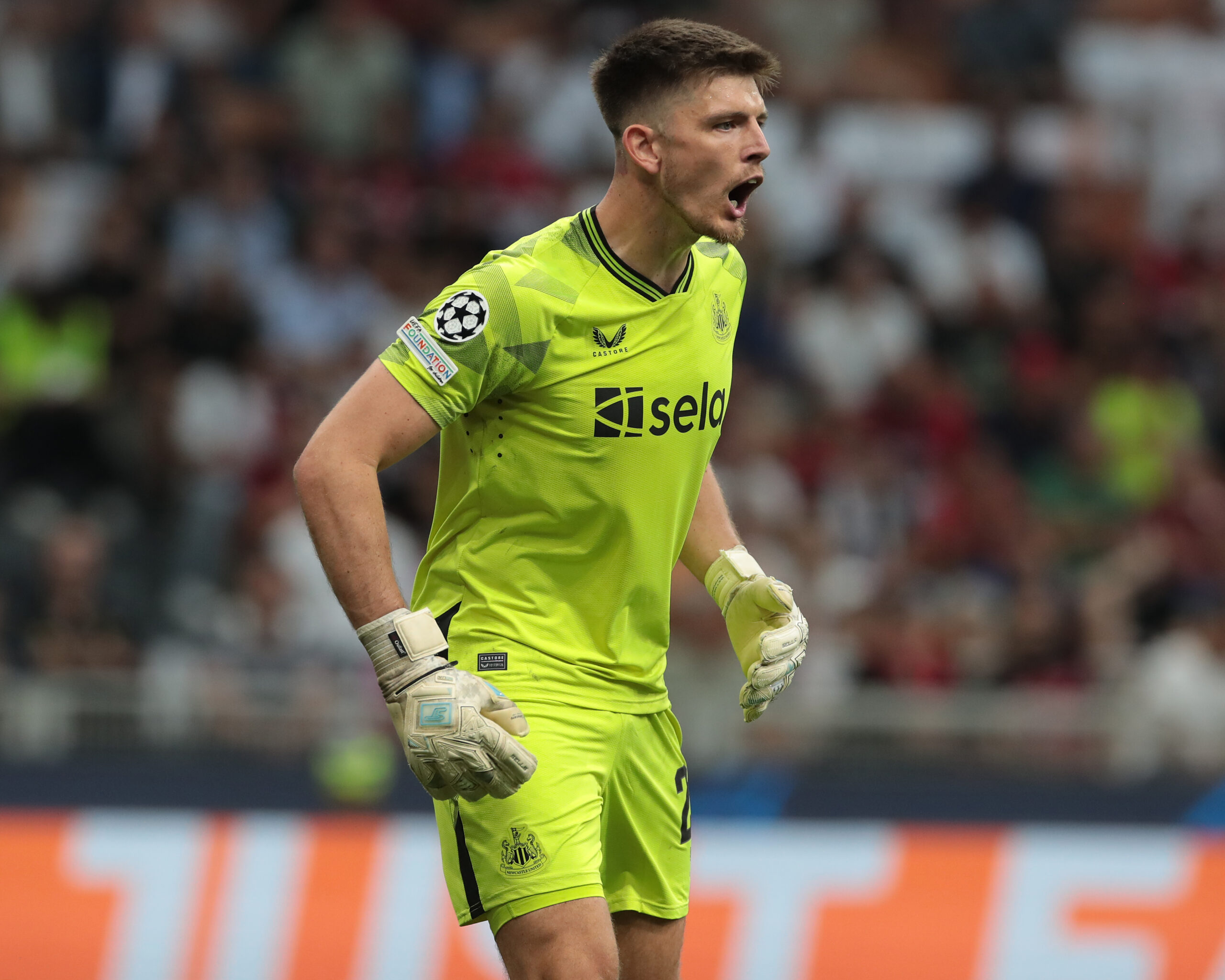 MILAN, ITALY - SEPTEMBER 19: Nick Pope of Newcastle United FC looks on during the UEFA Champions League match between AC Milan and Newcastle United FC at Stadio Giuseppe Meazza on September 19, 2023 in Milan, Italy. (Photo by Emilio Andreoli/Getty Images)