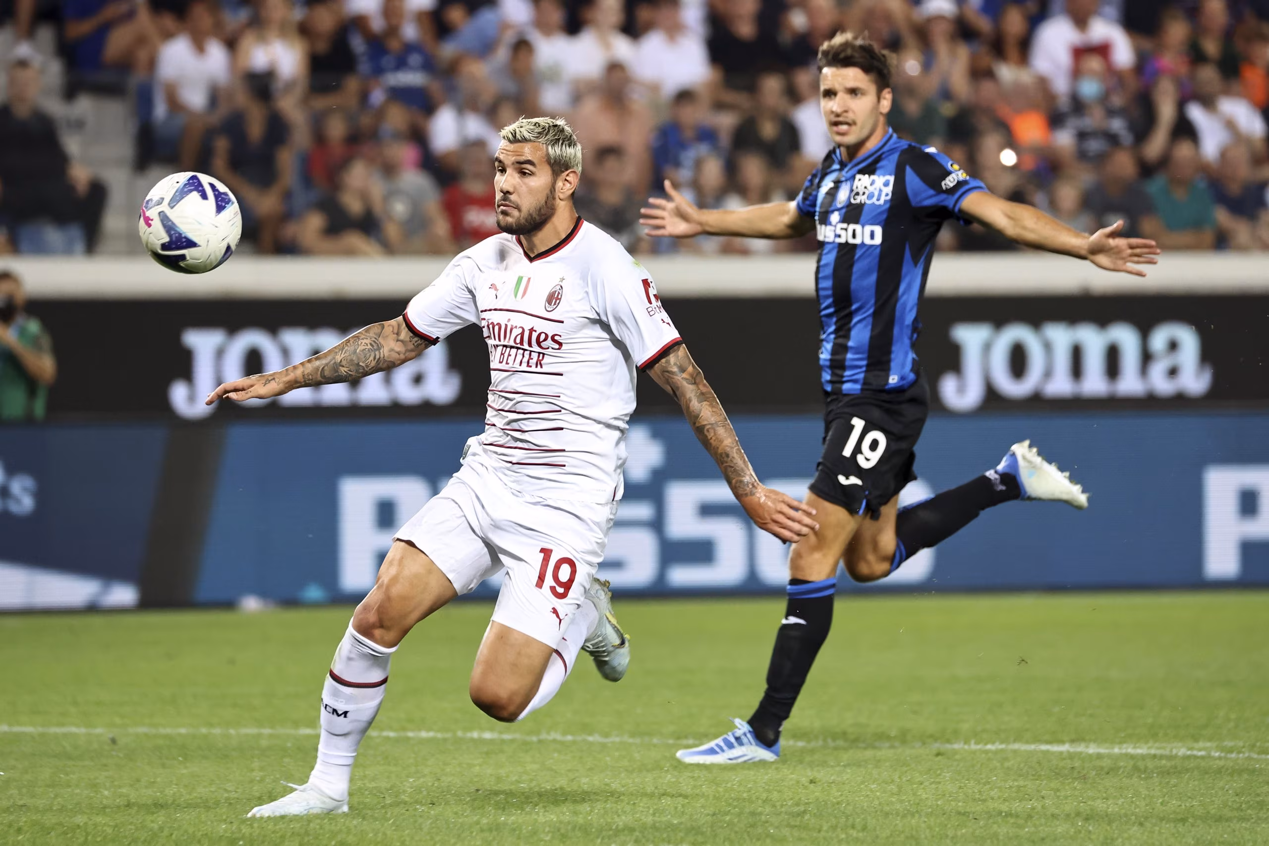 BERGAMO, ITALY - AUGUST 21: Theo Hernandez of AC Milan in action during the Serie A match between Atalanta BC and AC Milan at Gewiss Stadium on August 21, 2022 in Bergamo, Italy. (Photo by Giuseppe Cottini/Getty Images)
