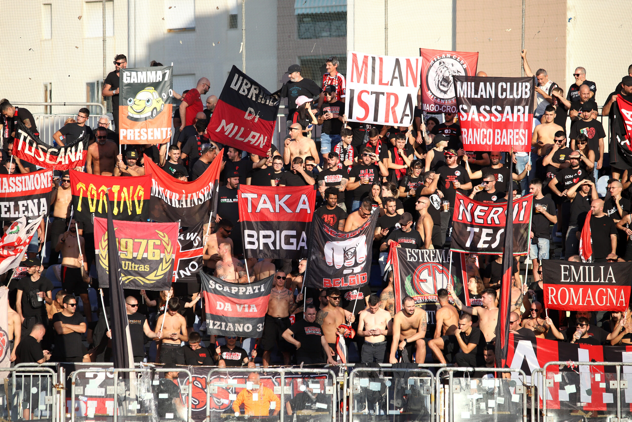 CAGLIARI, ITALY - SEPTEMBER 27: The supporters of Milan during the Serie A TIM match between Cagliari Calcio and AC Milan at Sardegna Arena on September 27, 2023 in Cagliari, Italy. (Photo by Enrico Locci/Getty Images)