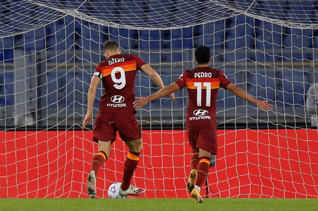 ROME, ITALY – OCTOBER 18: Edin Dzeko with his teammates of AS Roma celebrates after scoring the team’s second goal during the Serie A match between AS Roma and Benevento Calcio at Stadio Olimpico on October 18, 2020 in Rome, Italy. (Photo by Paolo Bruno/Getty Images)