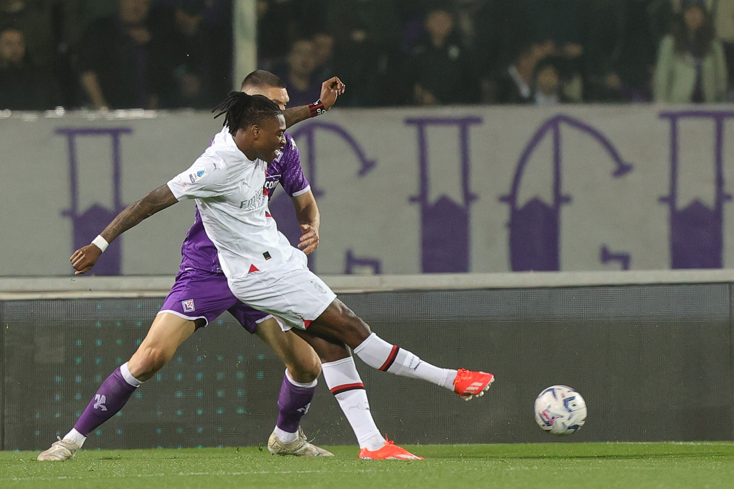 FLORENCE, ITALY - MARCH 30: Rafael Leao of AC Milan in action during the Serie A TIM match between ACF Fiorentina and AC Milan - Serie A TIM at Stadio Artemio Franchi on March 30, 2024 in Florence, Italy.(Photo by Gabriele Maltinti/Getty Images)