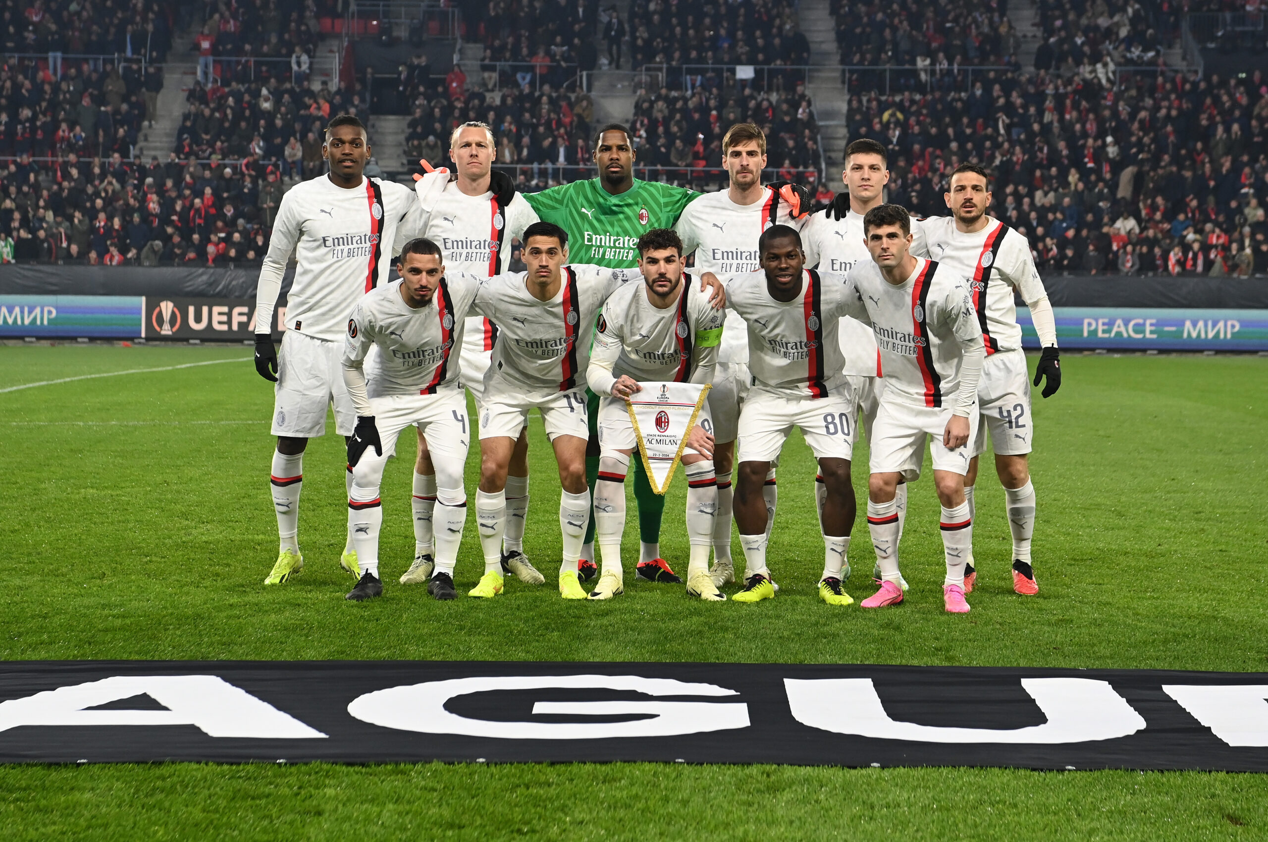 RENNES, FRANCE - FEBRUARY 22: Players of AC Milan line up prior to the UEFA Europa League 2023/24 playoff second leg match between Stade Rennais FC and AC Milan at Roazhon Park on February 22, 2024 in Rennes, France. (Photo by Claudio Villa/AC Milan via Getty Images)