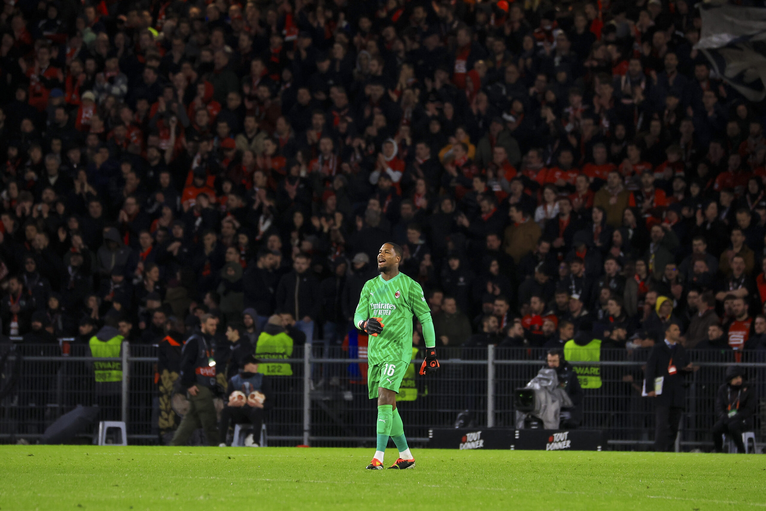 RENNES, FRANCE - FEBRUARY 22: Mike Maignan of AC Milan looks on during the UEFA Europa League 2023/24 knockout round play-offs second leg match between Stade Rennais FC and AC Milan at Roazhon Park on February 22, 2024 in Rennes, France. (Photo by Giuseppe Cottini/AC Milan via Getty Images)