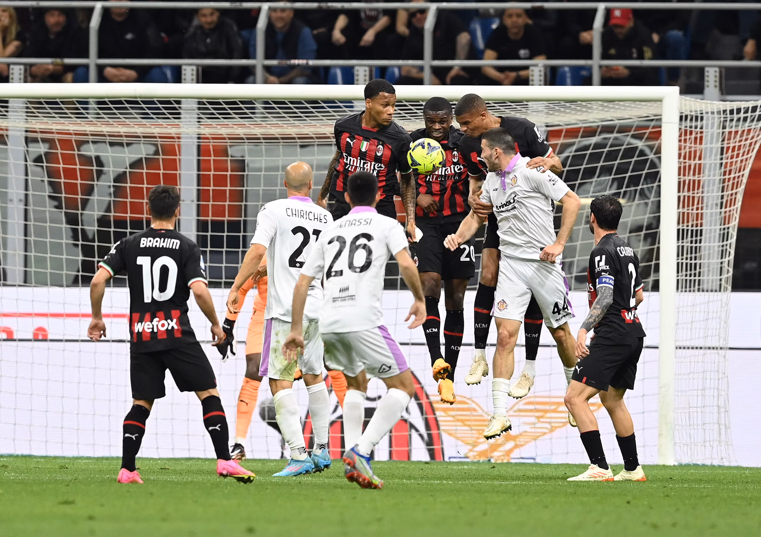 MILAN, ITALY - MAY 03: Malick Thiaw, Pierre Kalulu and Aster Vranckx of AC Milan in action during the Serie A match between AC Milan and US Cremonese at Stadio Giuseppe Meazza on May 03, 2023 in Milan, Italy. (Photo by Claudio Villa/AC Milan via Getty Images)