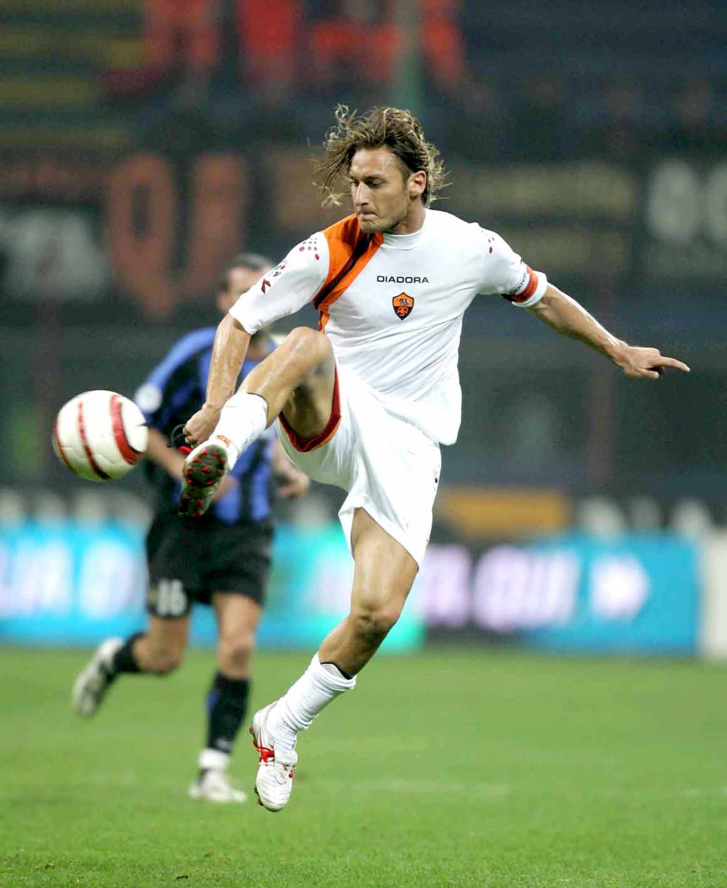 MILAN, ITALY - OCTOBER 26: Francesco Totti #10 of AS Roma handles the ball during the Serie A match between Inter Milan and AS Roma on October 26, 2005 at the Giuseppe Meazza, San Siro Stadium in Milan, Italy. (Photo by New Press/Getty Images)
