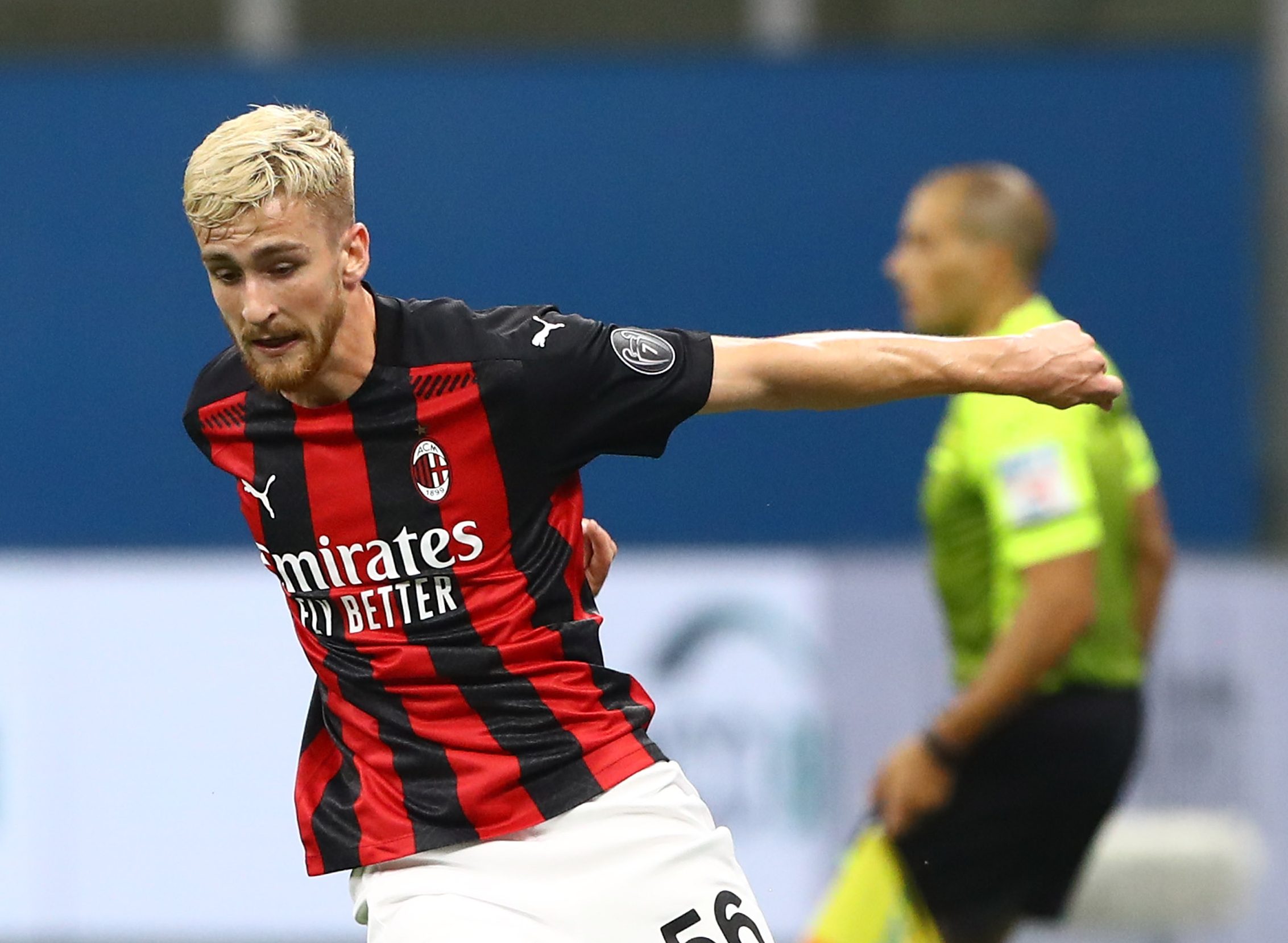 MILAN, ITALY - SEPTEMBER 21: Alexis Saelemaekers of AC Milan in action during the Serie A match between AC Milan and Bologna FC at Stadio Giuseppe Meazza on September 21, 2020 in Milan, Italy. (Photo by Marco Luzzani/Getty Images)