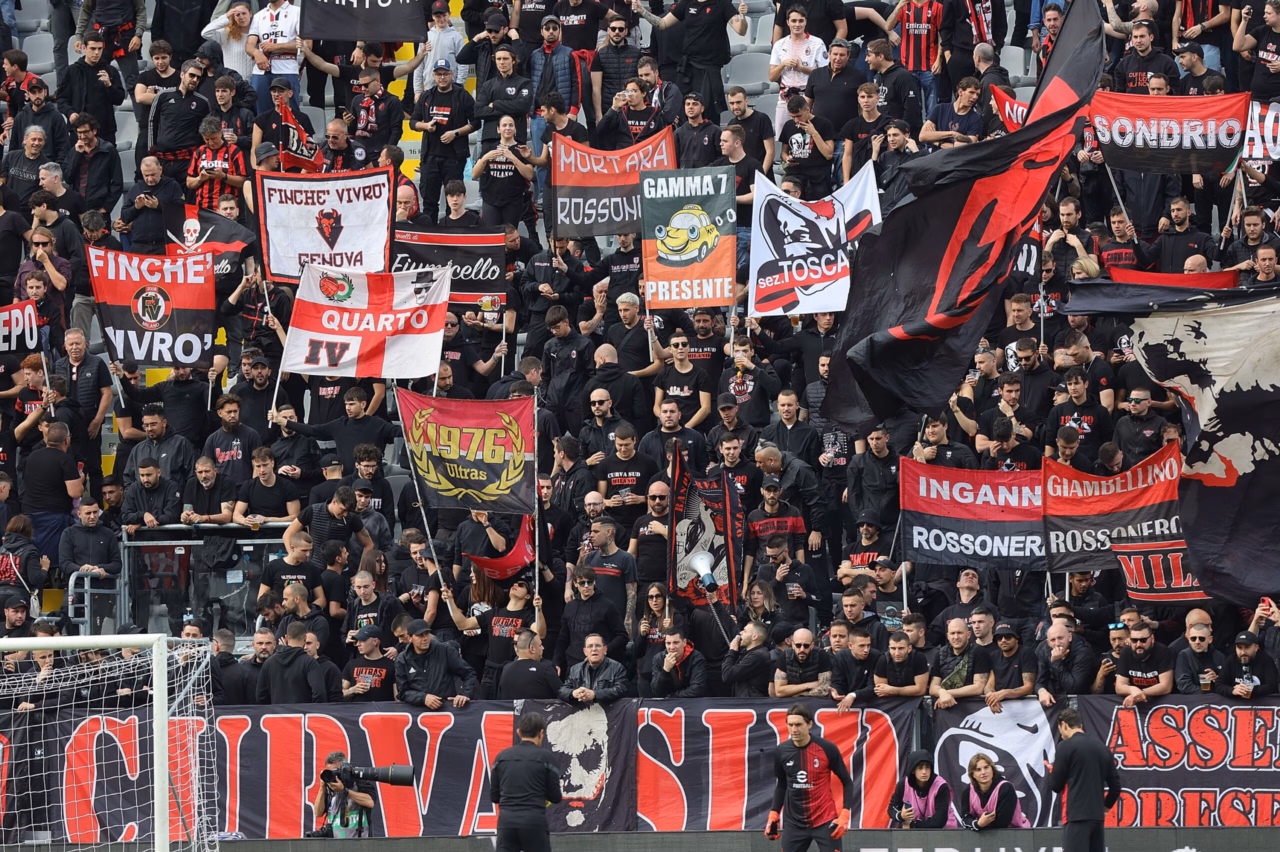 LA SPEZIA, ITALY - MAY 13: Fans of AC Milan during the Serie A match between Spezia Calcio and AC MIlan at Stadio Alberto Picco on May 13, 2023 in La Spezia, Italy. (Photo by Gabriele Maltinti/Getty Images)