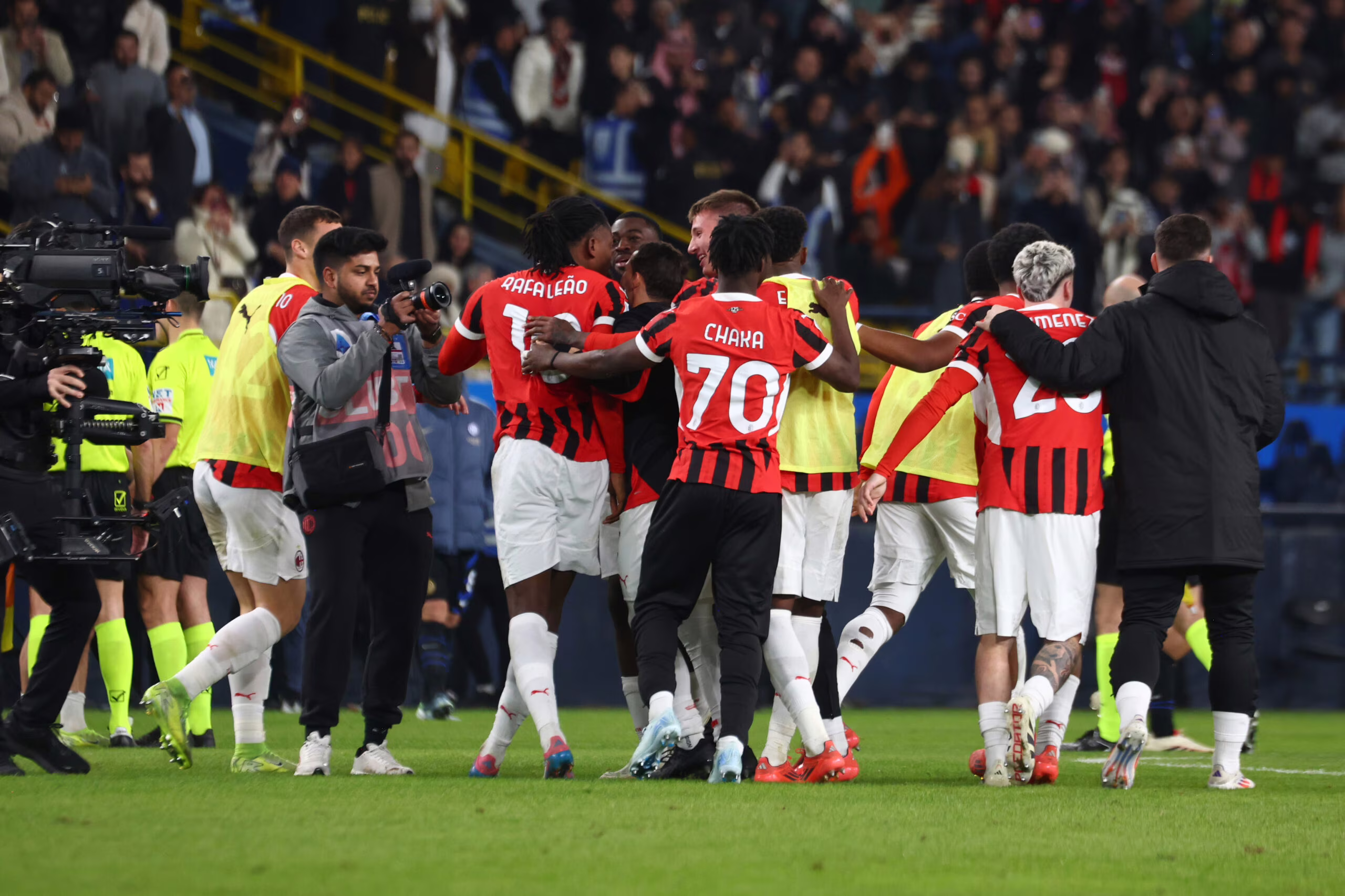 RIYADH, SAUDI ARABIA - JANUARY 06: Players of Milan celebrate the victory after the Italian Super Cup Final match between FC Internazionale and AC Milan at the Al Awwal Park Stadium on January 06, 2025 in Riyadh, Saudi Arabia. (Photo by Giuseppe Cottini/AC Milan via Getty Images)