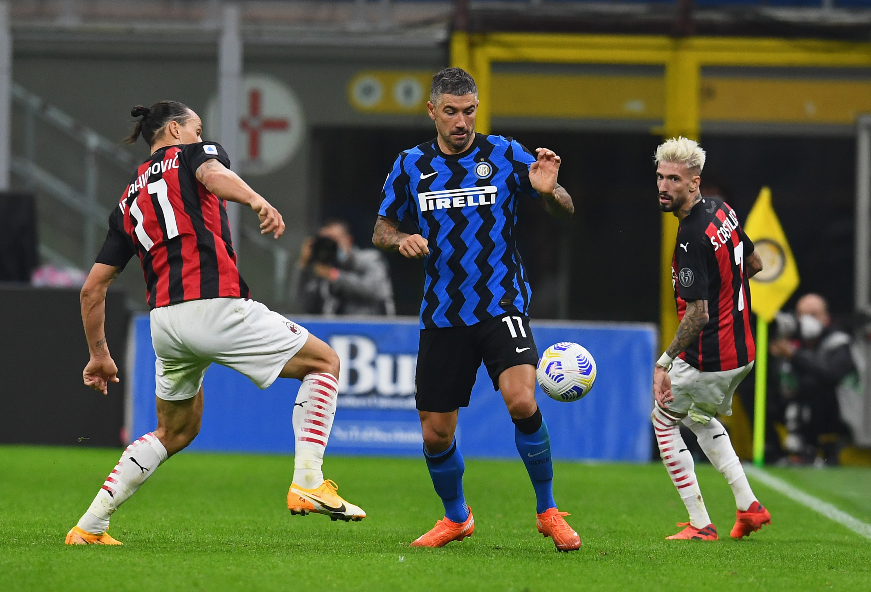 MILAN, ITALY - OCTOBER 17: Aleksandar Kolarov of FC Internazionale in action during the Serie A match between FC Internazionale and AC Milan at Stadio Giuseppe Meazza on October 17, 2020 in Milan, Italy. (Photo by Claudio Villa - Inter/Inter via Getty Images)
