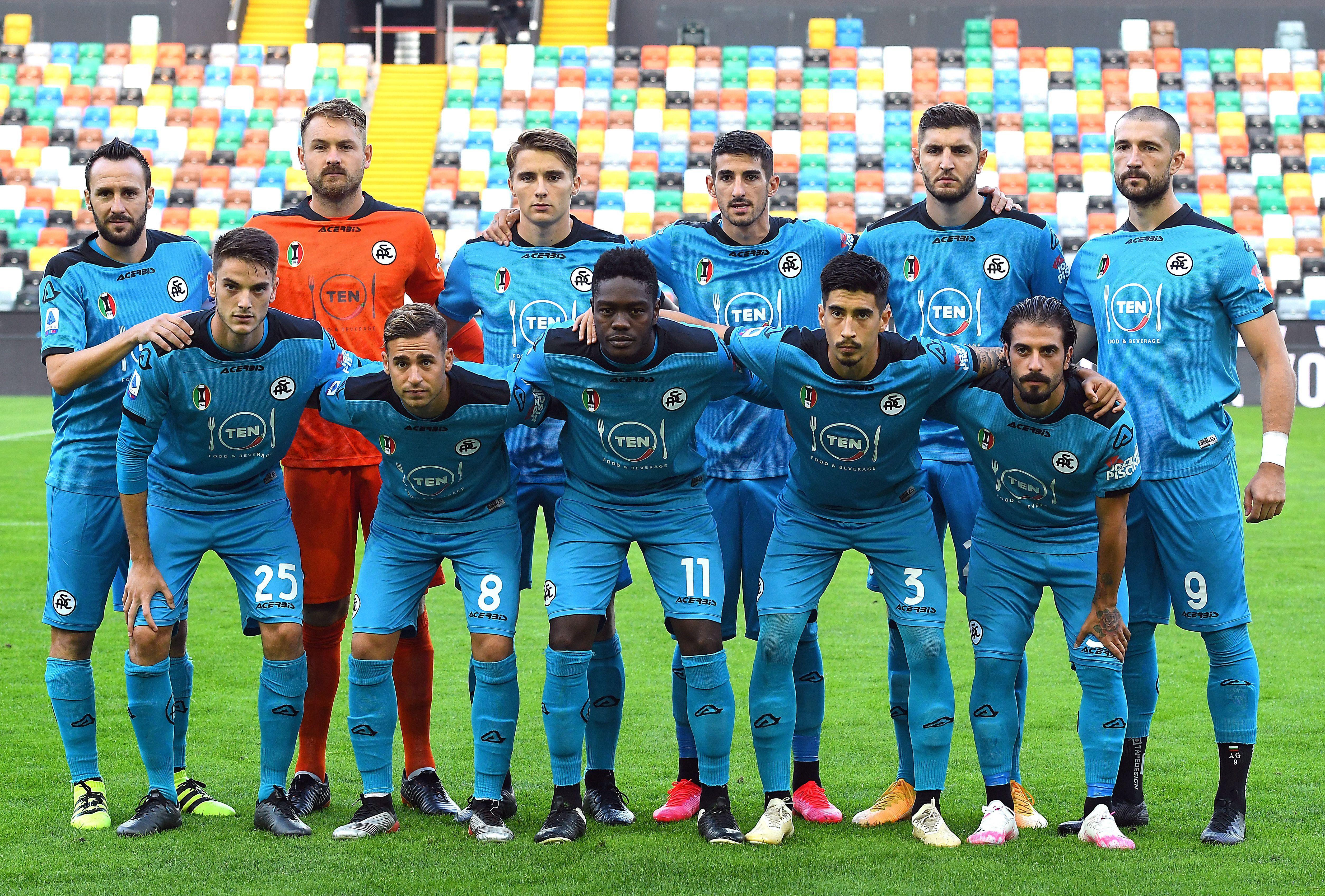 UDINE, ITALY - SEPTEMBER 30: Spezia Calcio team line up during the Serie A match between Udinese Calcio and Spezia Calcio at Dacia Arena on September 30, 2020 in Udine, Italy. (Photo by Alessandro Sabattini/Getty Images)