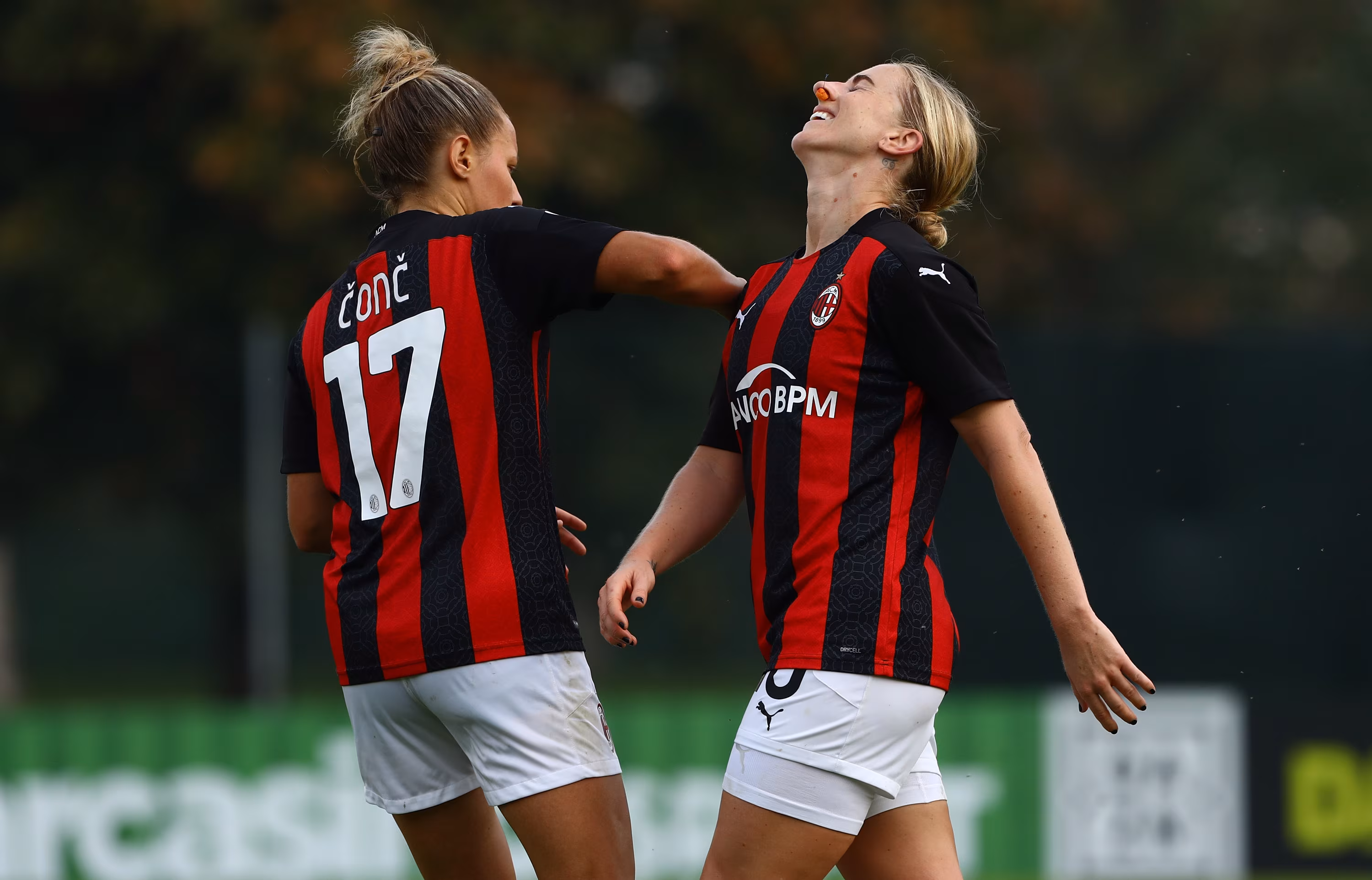 MILAN, ITALY - OCTOBER 18: Natasha Dowie of AC Milan reacts during the Women Serie A match between AC Milan and FC Internazionale at Centro Sportivo Vismara on October 18, 2020 in Milan, Italy. (Photo by Marco Luzzani/Getty Images)