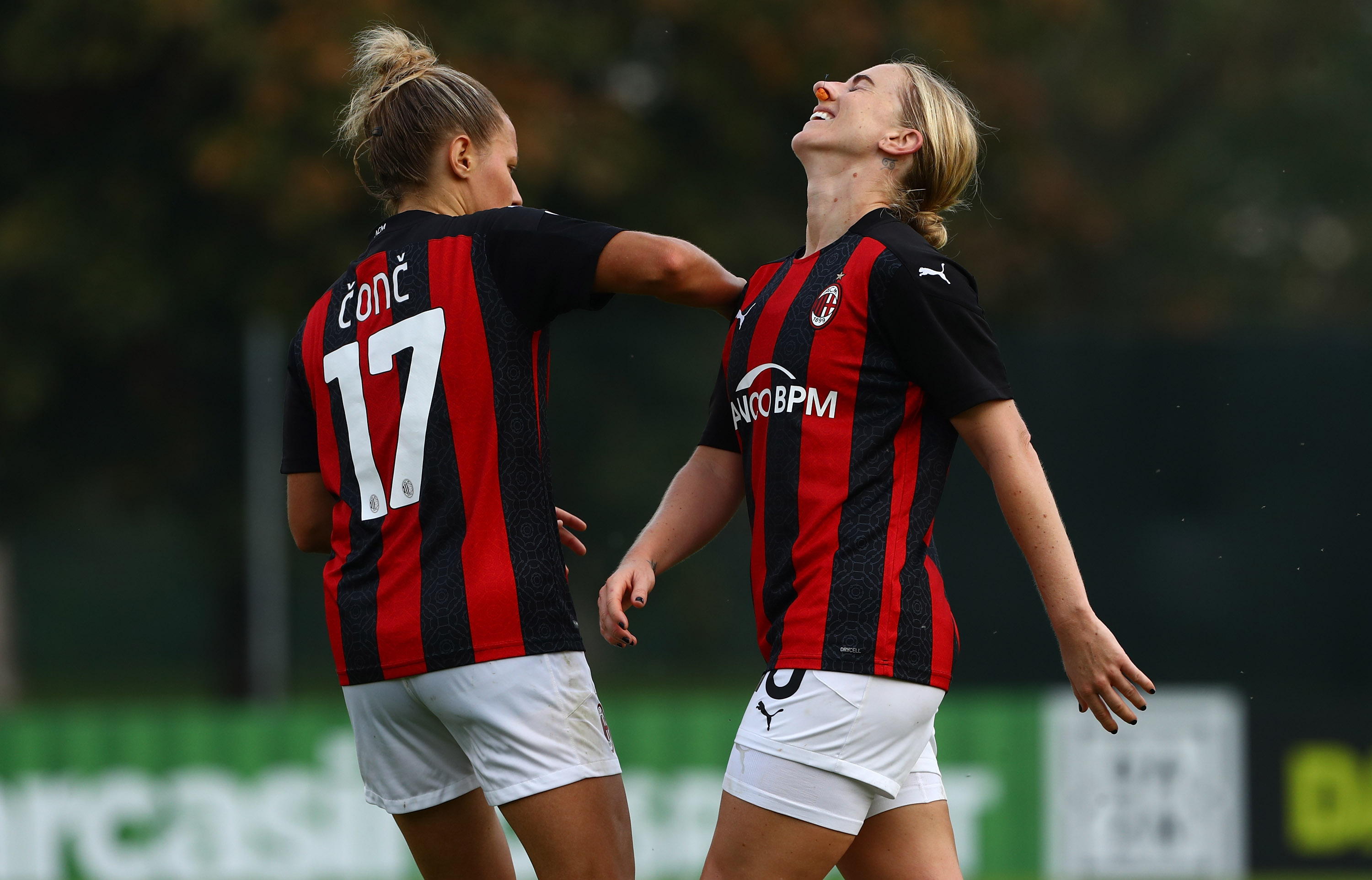 MILAN, ITALY - OCTOBER 18: Natasha Dowie of AC Milan reacts during the Women Serie A match between AC Milan and FC Internazionale at Centro Sportivo Vismara on October 18, 2020 in Milan, Italy. (Photo by Marco Luzzani/Getty Images)