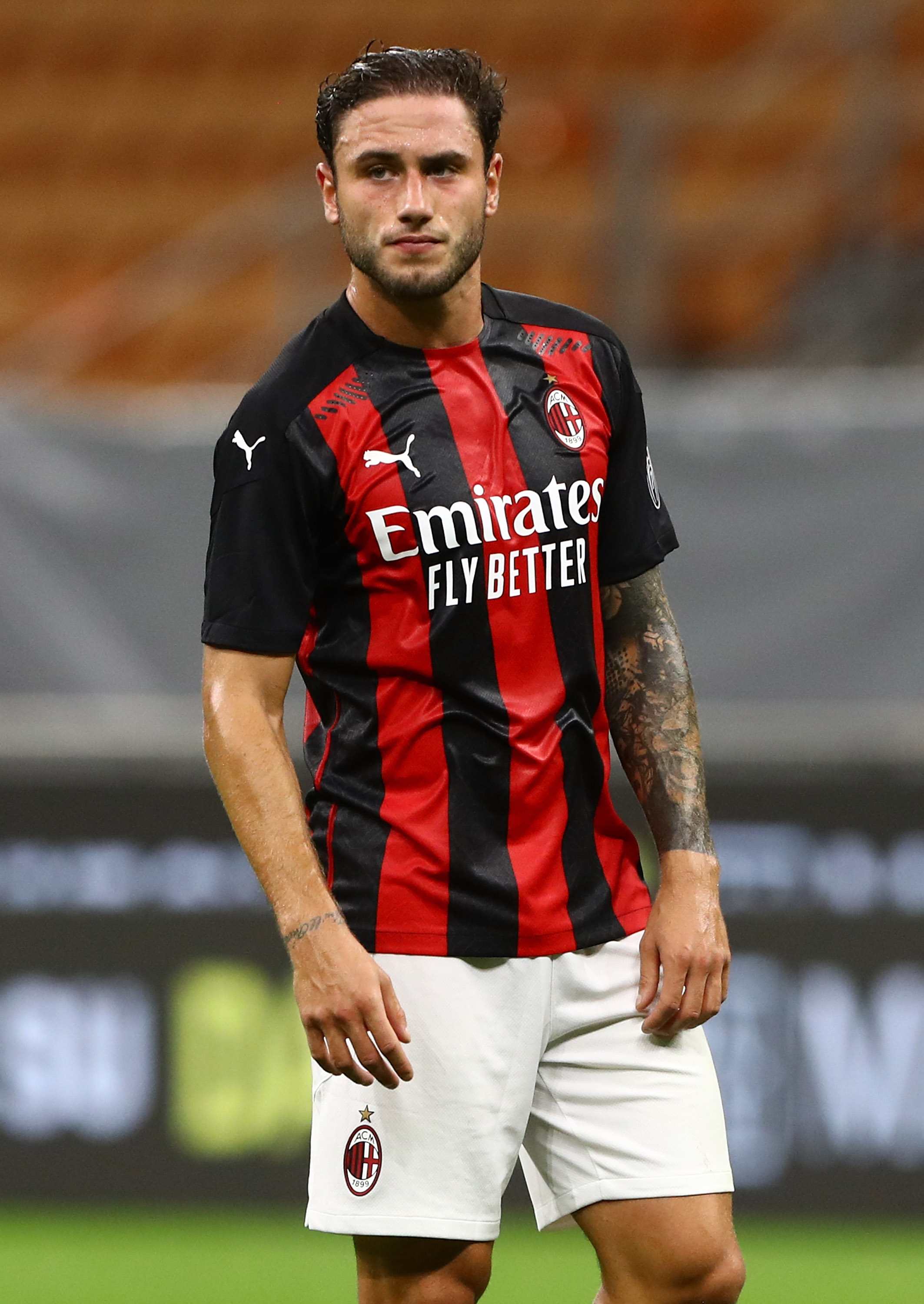 MILAN, ITALY - SEPTEMBER 05: Davide Calabria of AC Milan looks on during the pre-season friendly match between AC Milan and Monza at Stadio Giuseppe Meazza on September 5, 2020 in Milan, Italy. (Photo by Marco Luzzani/Getty Images)