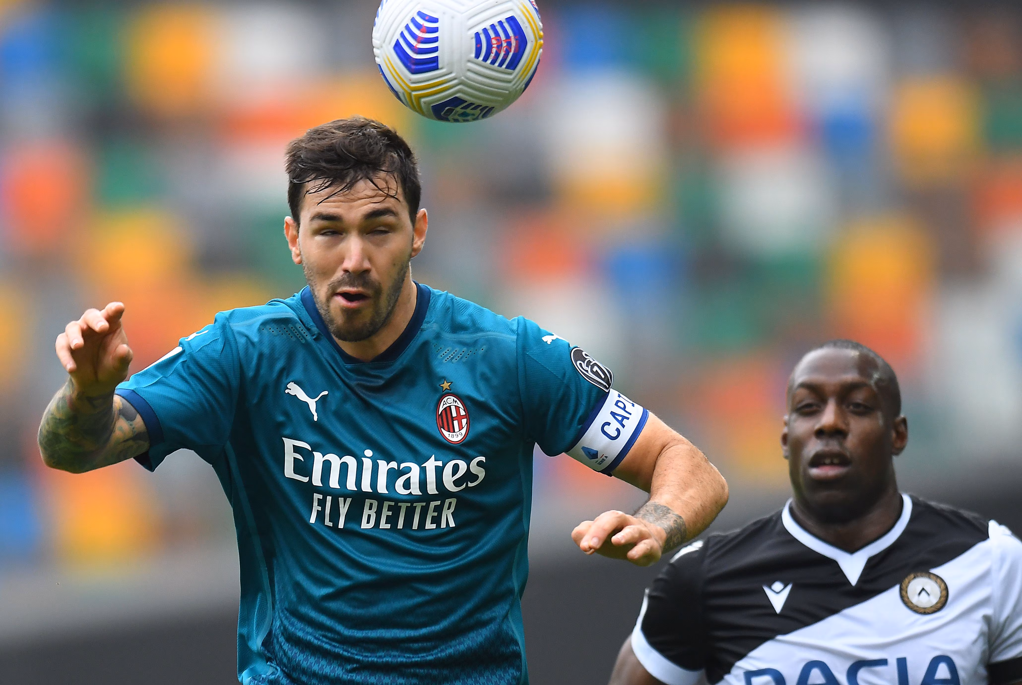 UDINE, ITALY - NOVEMBER 01: Alessio Romagnoli of AC Milan jump for the ball during the Serie A match between Udinese Calcio and AC Milan at Dacia Arena on November 01, 2020 in Udine, Italy. (Photo by Alessandro Sabattini/Getty Images)