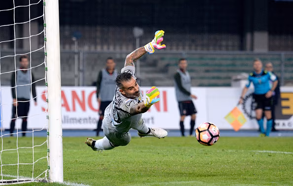 VERONA, ITALY - OCTOBER 16: Stefano Sorrentino goalkeeper of AC ChievoVerona in action during the Serie A match between AC ChievoVerona and AC Milan at Stadio Marc'Antonio Bentegodi on October 16, 2016 in Verona, Italy. (Photo by Dino Panato/Getty Images)
