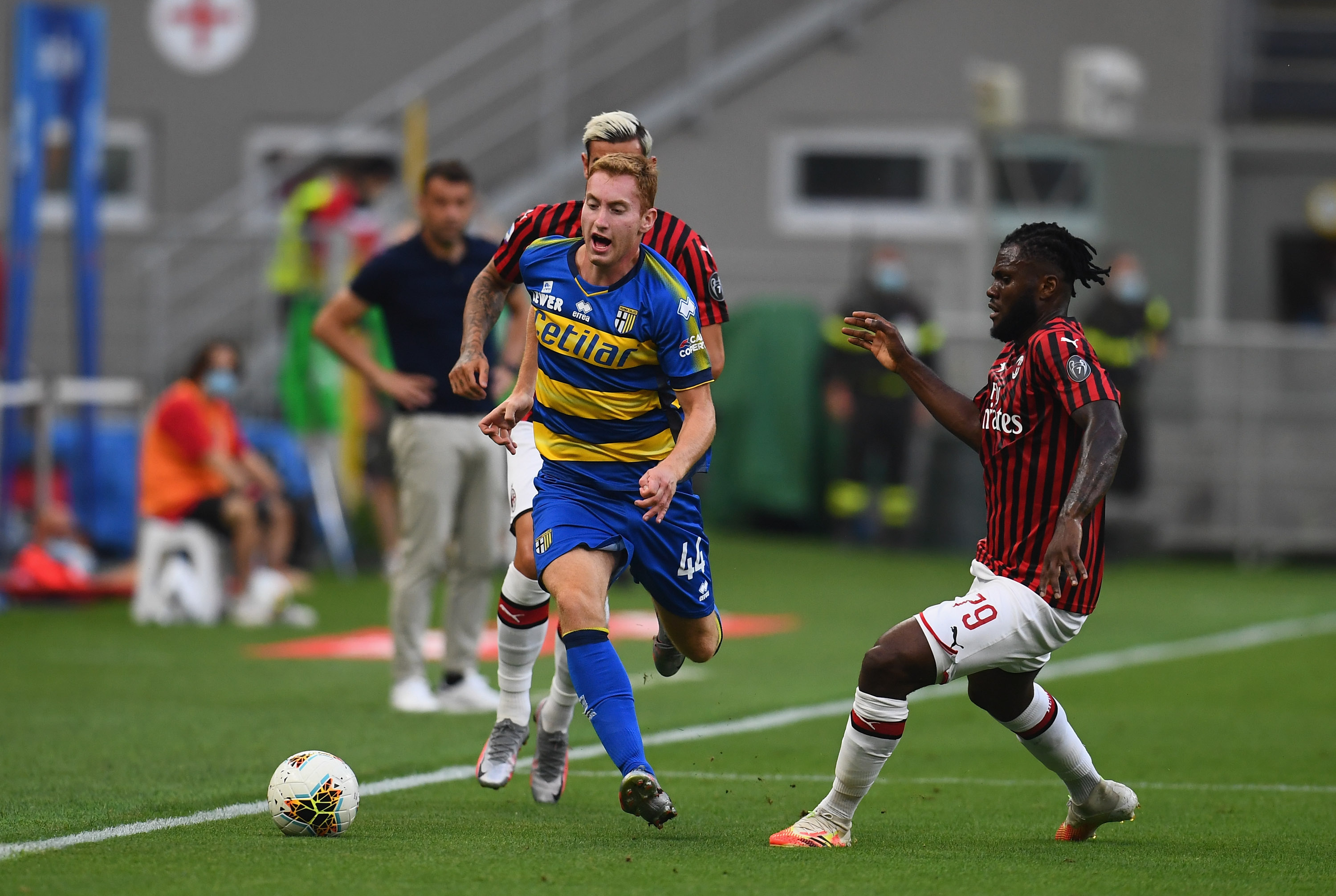 MILAN, ITALY - JULY 15: Dejan Kulusevski of Parma in action during the Serie A match between AC Milan and Parma Calcio at Stadio Giuseppe Meazza on July 15, 2020 in Milan, Italy. (Photo by Claudio Villa/Getty Images)