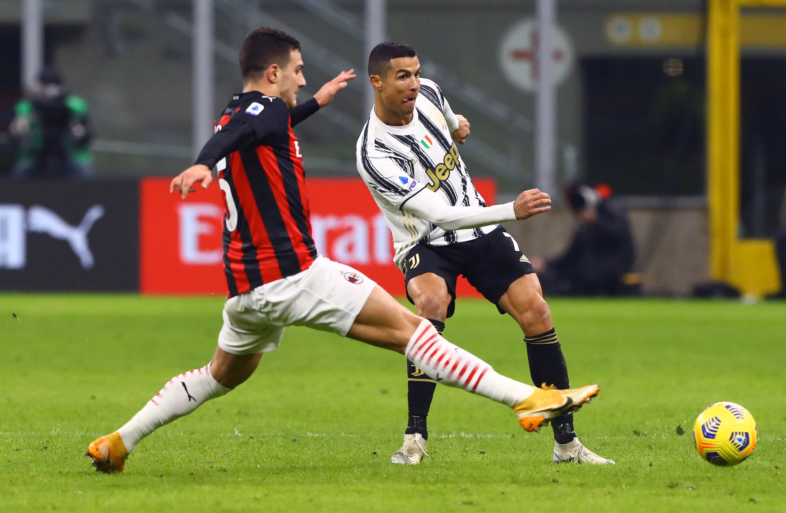 Diogo Dalot del Milan a contrasto con Cristiano Ronaldo della Juventus