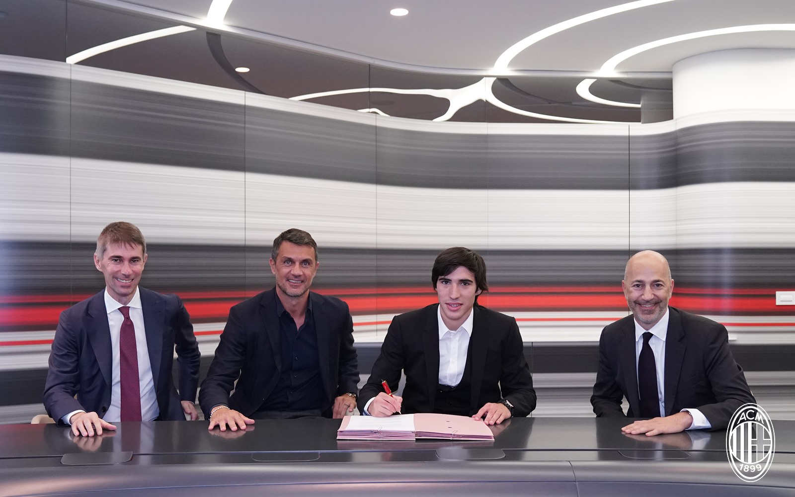 La dirigenza rossonera in occasione della presentazione del neo-acquisto, Sandro Tonali.